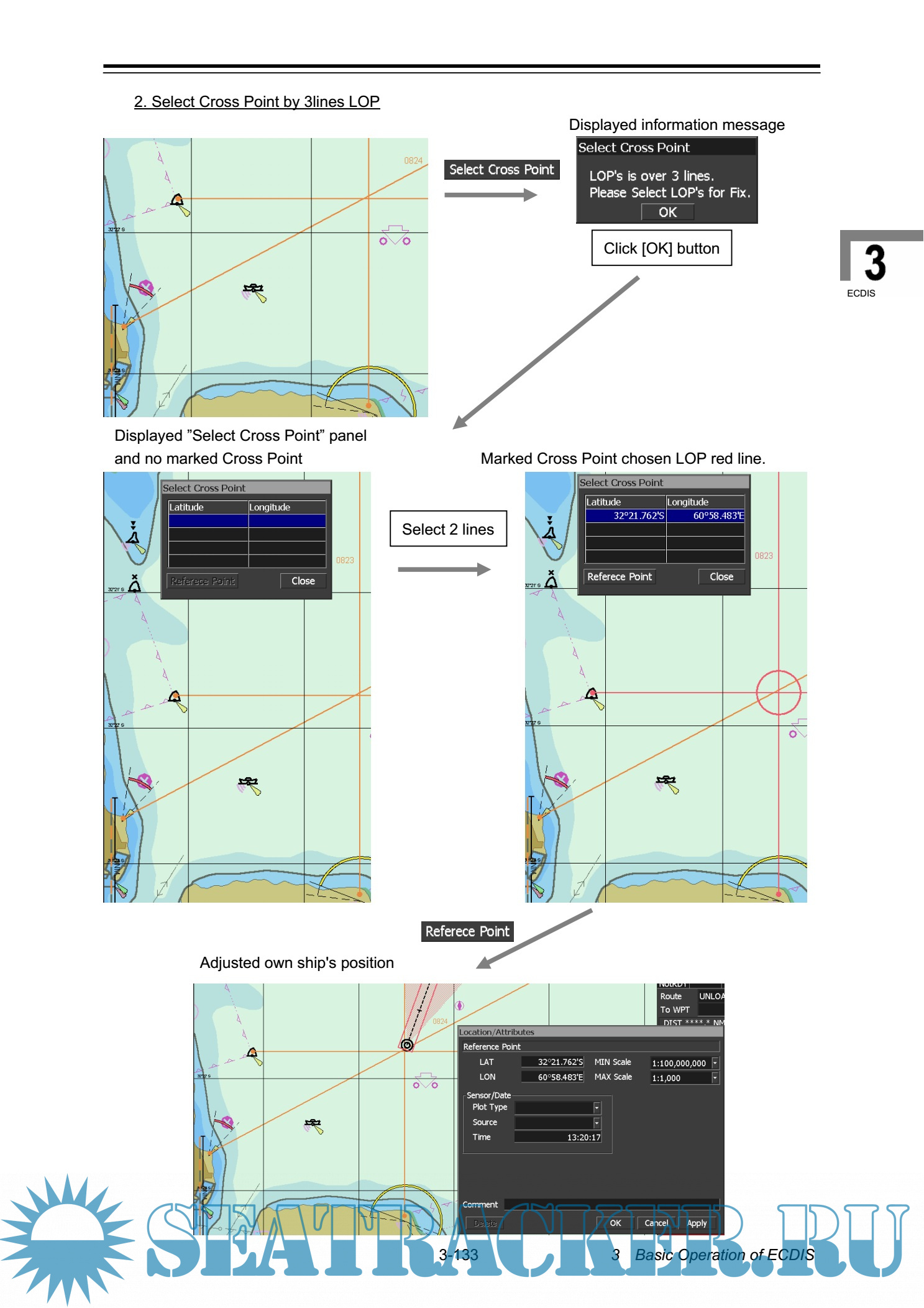 • Display of information such as the date/time, current position, heading, and ship’s speed
