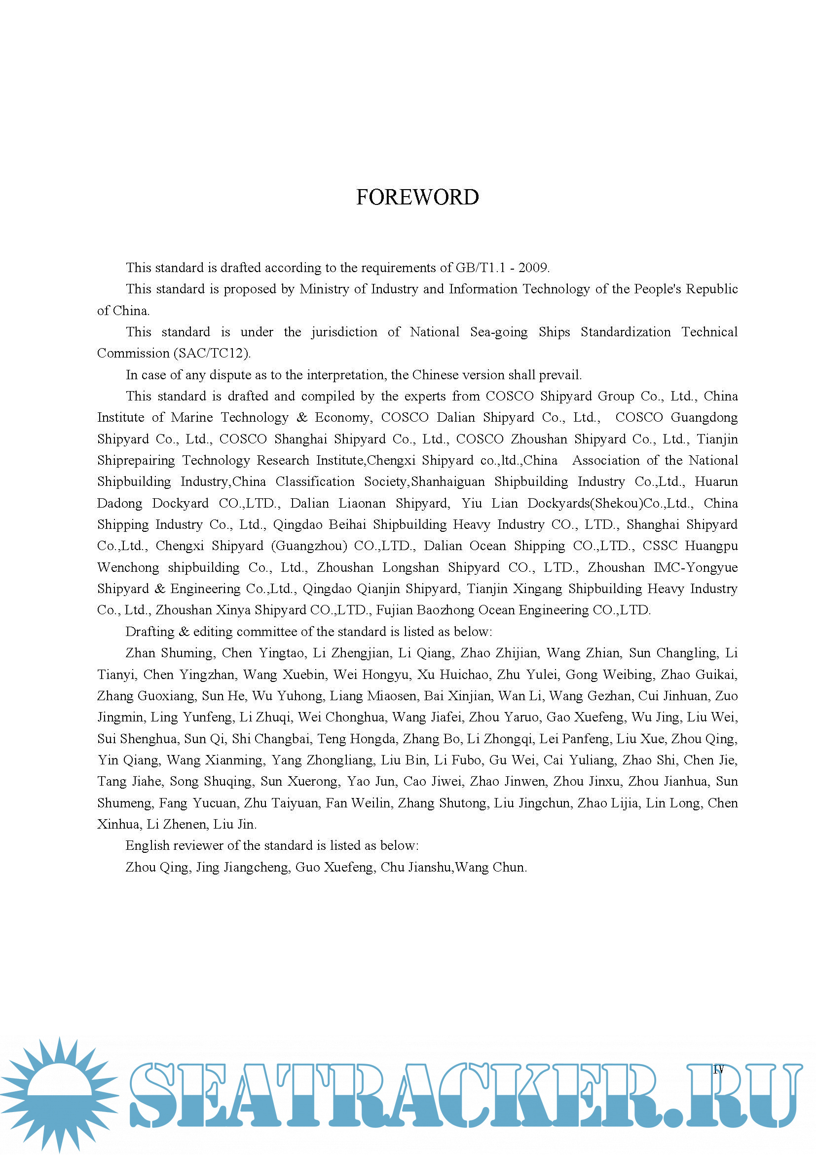 This standard is drafted and compiled by the experts from COSCO Shipyard Group Co., Ltd., China Institute of Marine Technology & Economy, COSCO Dalian Shipyard Co., Ltd., COSCO Guangdong Shipyard Co., Ltd., COSCO Shanghai Shipyard Co., Ltd., COSCO Zhoushan Shipyard Co., Ltd., Tianjin Shiprepairing Technology Research Institute,Chengxi Shipyard co.,ltd.,China Association of the National Shipbuilding Industry,China Classification Society,Shanhaiguan Shipbuilding Industry Co.,Ltd., Huarun Dadong Dockyard CO.,LTD., Dalian Liaonan Shipyard, Yiu Lian Dockyards(Shekou)Co.,Ltd., China Shipping Industry Co., Ltd., Qingdao Beihai Shipbuilding Heavy Industry CO., LTD., Shanghai Shipyard Co.,Ltd., Chengxi Shipyard (Guangzhou) CO.,LTD., Dalian Ocean Shipping CO.,LTD., CSSC Huangpu Wenchong shipbuilding Co., Ltd., Zhoushan Longshan Shipyard CO., LTD., Zhoushan IMC-Yongyue Shipyard & Engineering Co.,Ltd., Qingdao Qianjin Shipyard, Tianjin Xingang Shipbuilding Heavy Industry Co., Ltd., Zhoushan Xinya Shipyard CO.,LTD., Fujian Baozhong Ocean Engineering CO.,LTD.