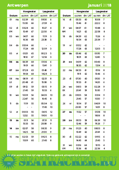 Description: Belgium Tide tables 2018 for 8 harbours.
