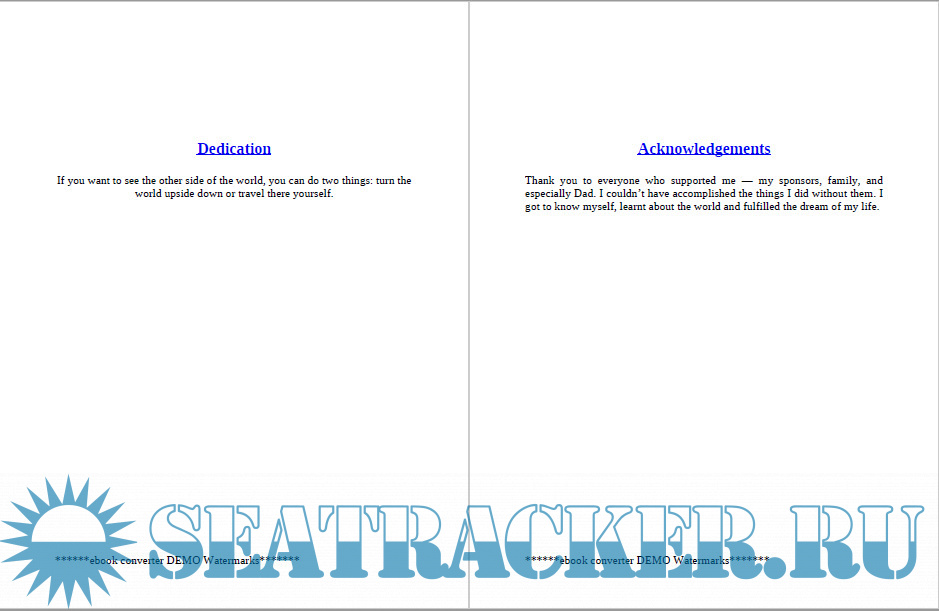 Year: 2014 Language: english Author: Laura Dekker Genre: Guide Publisher: HarperCollins Edition: 2014 Format: PDF Quality: eBook Pages count: 353 Description: One of my favorite quotes ever comes from one of Laura’s sailing heroes, Bernard Moitessier, the legendary Frenchman who participated in the first singlehanded race around the world in the late sixties. Non-stop. Back then, ship to shore communications were primitive, and when he passed Cape Horn and was about to head back north to the finish line, he had no idea he was in first place. What he did know was that he wasn’t ready to face life ashore in northern Europe, and so he made the famous decision to continue sailing west back to Polynesia. Off the Cape of Good Hope, he used a slingshot to fire a message home onto the deck of a tanker: ‘I am continuing non-stop towards the Pacific Islands because I am happy at sea, and perhaps also, to save my soul. Laura and I are not his only fans. This quote resonated with decades of sailors who wanted to escape the industrial machine and surged south to tropical climates on boats, to catch rainwater, eat fish, rice and bananas, navigate by sun and stars. It was a simple, healthy life that beckoned to many a kindred spirit troubled by the demands of civilisation, and more than 40 years later, one young lady had to fight long and hard for her right to join these ranks and happily sail around the world. And, when Laura Dekker finally broke free to busily prove all the naysayers wrong, I cheered her on.-How it all began? I am Laura and I was born in Whangarei, New Zealand. My parents were sailing around the world at the time and had been in New Zealand for two years. I became the youngest member of the crew when we made our way to Australia. They wanted to take their time to see as much of the world as possible. My sister Kim was born three years after me, and our 12-metre yacht eventually became too cramped for a family with two little girls. So we sailed back to the Netherlands where we moved into a real house for the first time. My parents’ journey had taken them seven years, and it was hard for Dad to live on firm land. He immediately started on the construction of an even bigger boat: a 20-metre, seaworthy Norwegian fishing cutter with enough room for everyone. Unfortunately, my parents’ marriage broke up and, at the age of six, I chose to stay with my father. We lived in a caravan for some time while he worked on the new boat. Additional info: If you want to see the other side of the world, you can do two things: turn the world upside down or travel there yourself.