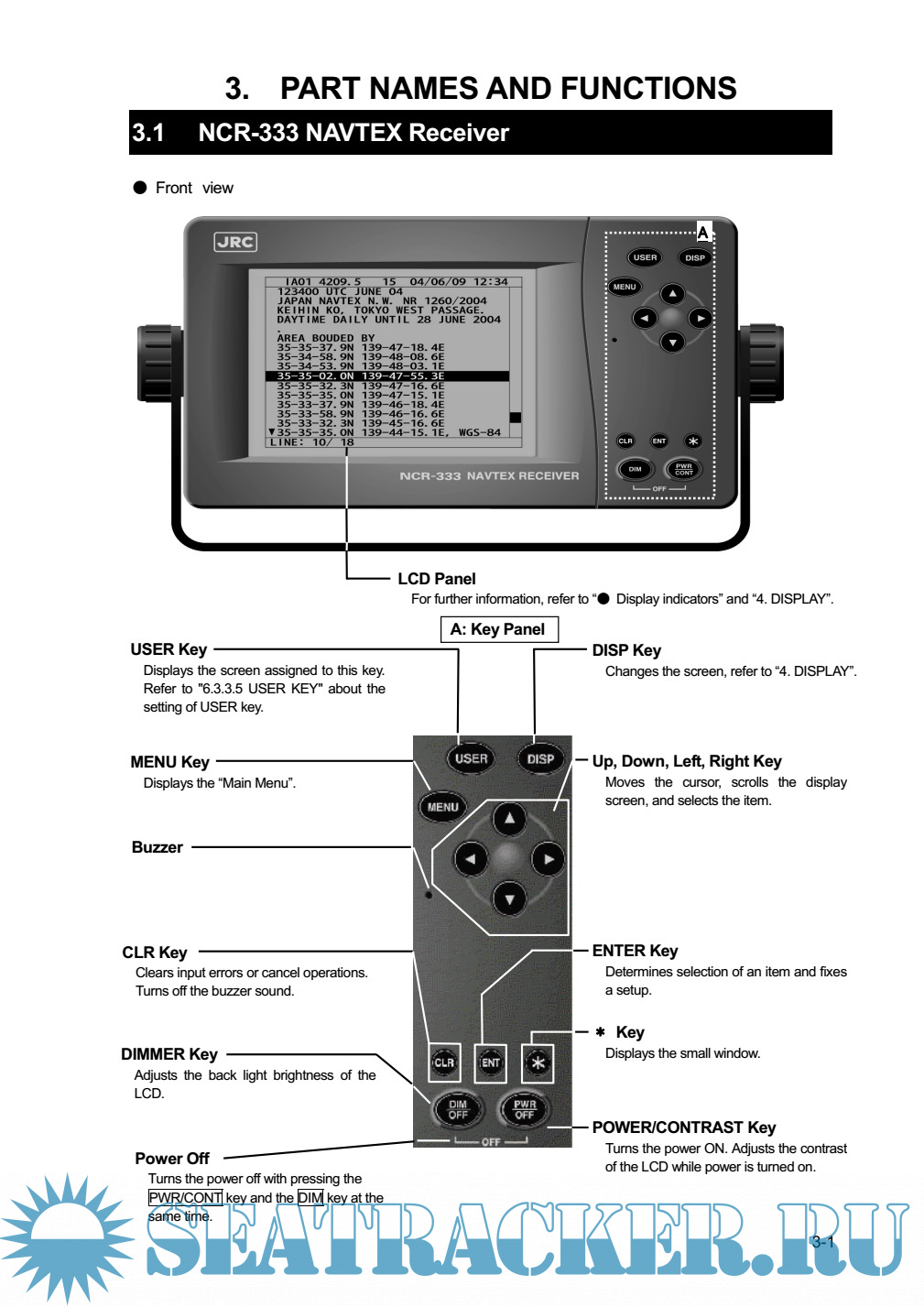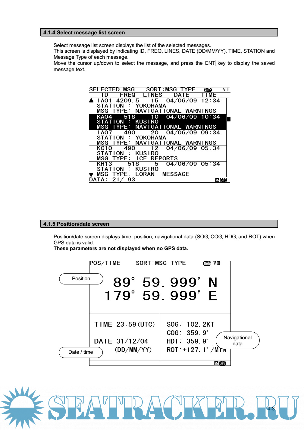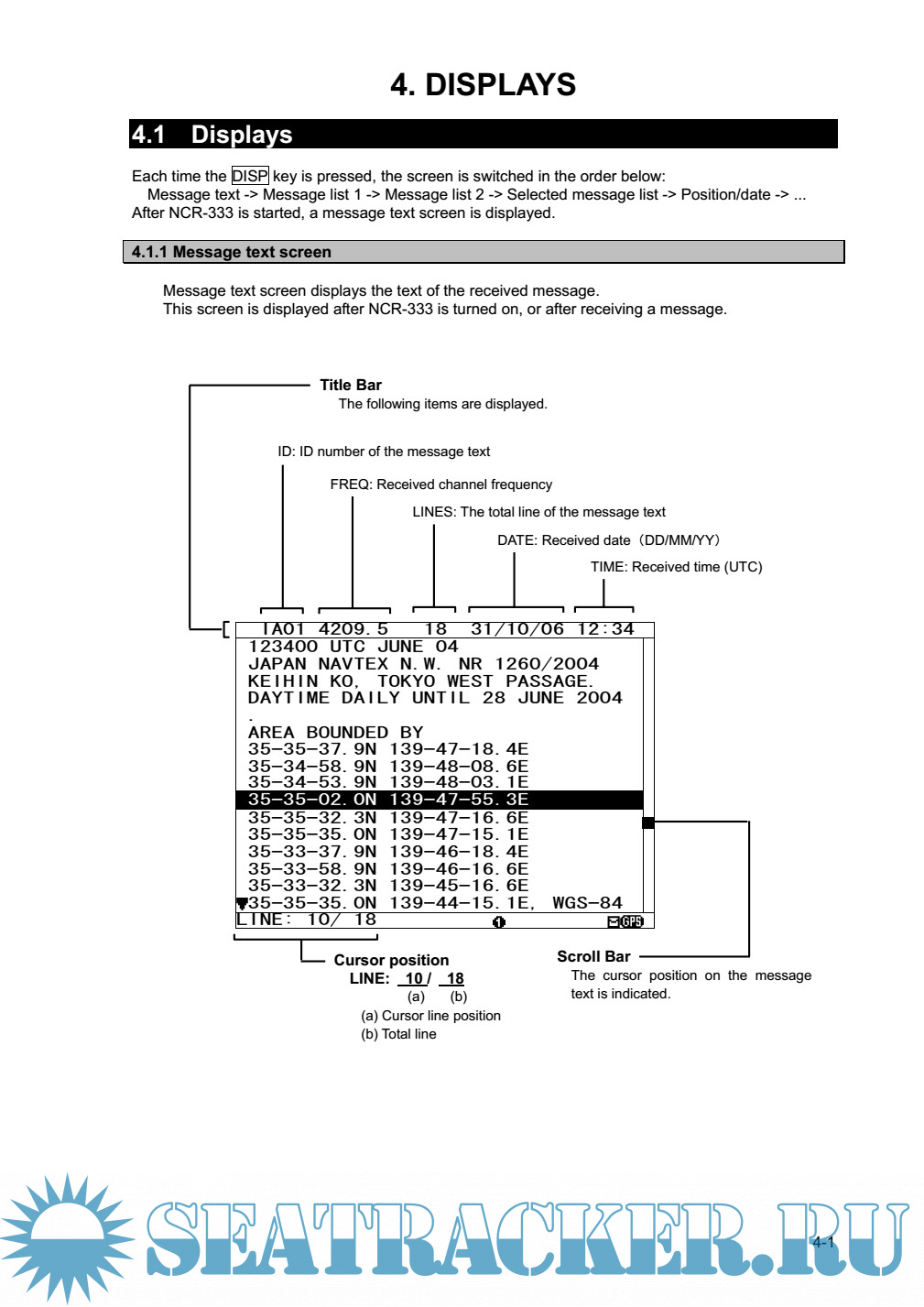 Description: The NAVTEX NCR-333 function receives and displays the various types of information broadcast