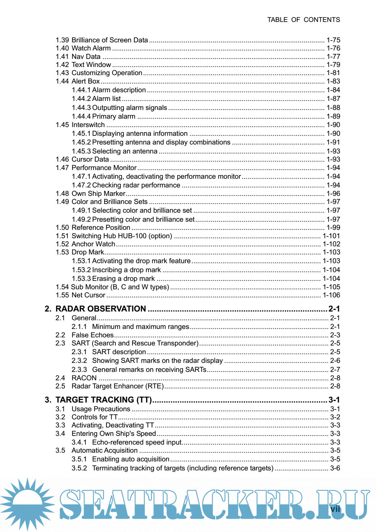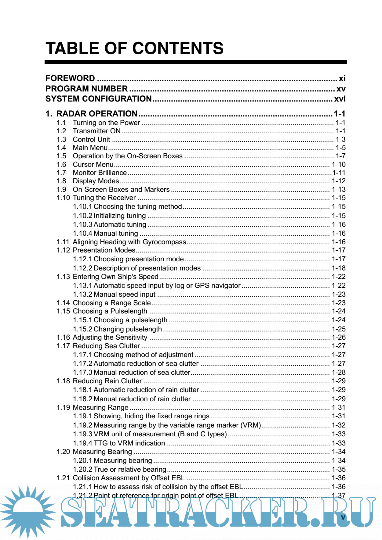 Year: 2011 Language: english Author: Furuno Genre: Manual Publisher: Furuno Edition: N Format: PDF Quality: eBook Pages count: 312 Description: Your radar is designed and constructed to meet the rigorous demands of the marine environment. However, no machine can perform its intended function unless installed, operated and maintained properly. Please carefully read and follow the recommended procedures for operation and maintenance. Features: • High-resolution 19-inch (FAR-2107-D), 20.1-inch LCD (FAR-2107(-BB)) or 23.1-inch LCD (FAR-2807(-D)). • Two types of trackball-equipped control units are available: RCU-014 (full keyboard) and the RCU-015 (palm control). The trackball is easy to use thanks to the ergonomically designed palm rest. • Simplified operation with point-and-click menu operation. • All functions are accessible by using the trackball alone. • Applicable to HSC (High Speed Craft) • TT, AIS, Radar Plotter and Interswitch supplied as standard. • Meets the requirements in IEC 62388 (Maritime navigation and radiocommunication equipment and systems - Shipborne radar - Performance requirements, methods of testing and required test results). • Meets the requirements in IMO MSC.192(79). • Meets the requirements in IEC 62288 (Maritime navigation and radiocommunication equipment and systems - Presentation of navigation-related information on shipborne navigational displays - General requirements, methods of testing and required test results). • Target alarm watches for targets entering or exiting an alarm zone • TCPA/CPA alarms • Electronic parallel index lines • 42 rpm antenna for high speed craft