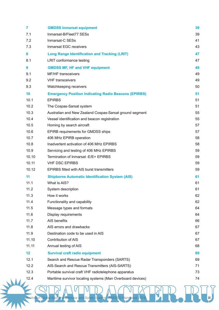 Year: 2018 Language: english Author: Australian Maritime Safety Authority (AMSA) Genre: Handbook Format: PDF Quality: eBook Pages count: 215 Description: This handbook has been produced by the Australian Maritime Safety Authority (AMSA), and is intended for use on ships that are: • compulsorily equipped with GMDSS radiocommunication installations in accordance with the requirements of the International Convention for the Safety of Life at Sea Convention 1974 (SOLAS) and Commonwealth or State government marine legislation • voluntarily equipped with GMDSS radiocommunication installations. It is the recommended textbook for candidates wishing to qualify for the Australian GMDSS General Operator’s Certifcate of Profciency. This handbook replaces the tenth edition of the GMDSS Handbook published in September 2013, and has been amended to reflect: • changes to regulations adopted by the 2015 International Telecommunication Union (ITU) World Radiocommunications Conference • changes to Inmarsat services • an updated AMSA distress beacon registration form • changes to various ITU Recommendations • changes to the publications published by the ITU • developments in Man Overboard (MOB) devices • clarifcation of GMDSS radio log procedures • general editorial updating and improvements. Procedures outlined in the handbook are based on the ITU Radio Regulations, on radio procedures used by Australian Maritime Communications Stations and Satellite Earth Stations in the Inmarsat network. Careful observance of the procedures covered by this handbook is essential for the effcient exchange of communications in the marine radiocommunication service, particularly where safety of life at sea is concerned. Special attention should be given to those sections dealing with distress, urgency, and safety. Additional info: No provision of this handbook or the ITU Radio Regulations prevents the use, by a ship in distress, of any means at its disposal to attract attention, make known its position and obtain help. Similarly, no provision of this handbook or the ITU Radio Regulations prevents the use, by ships engaged in search and rescue operations, of any means at their disposal to assist a ship in distress.