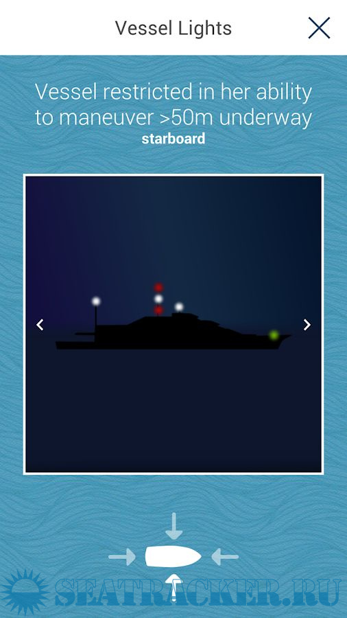 Check out the app for free! We have compiled two packages of 40 different vessels and with all important right of way rules. With a multitude of possible combinations, you're sure to get enough practice.