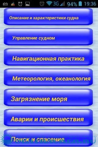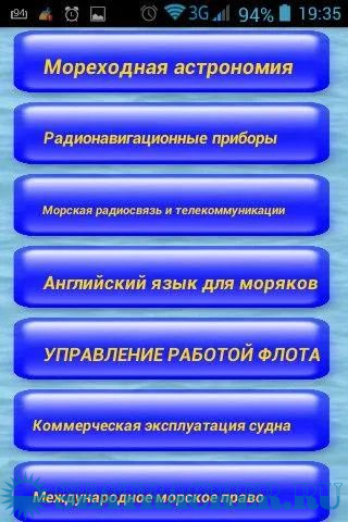 Описание: Ознакомительная версия приложения Судовождение. Наука судовождения и ее составные части...Приложение посвящено многим наукам в кораблевождении вы узнаете об устройстве судна, навигации, лоции, мореходной астрономии, техническим средствам судовождения и другим важным дисциплинам..В Приложении присутствуют:английский язык, включая деловой для моряков; лоция внутренних водных путей; мореходная астрономия; радионавигационные приборы; морская радиосвязь и телекоммуникации; управление работой флота; коммерческая эксплуатация судна; морское право; технология перевозки груза и др. Дополнительно вы узнаете : Борьба за живучесть судна, Электронная картография, Использование САРП в навигации, шкала Бофорта, записи в судовом журнале, связь сигнальными флагами, пожары на судах, Туманы на морях и океанах, Точность определения координат судна, Расхождение судов в канале, Порядок определения места судна, Навигационный запас, Швартовные операции к борту судна, Швартовка судна к причалу, Подъем якоря на судне, Командование спасательной шлюпкой, Возникновение статического крена, электронная картография и многое многое другое. Будет полезно для мореходного училища. Имеет ограничения по просмотру! Для полной информации есть платная версия.
