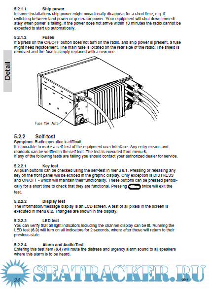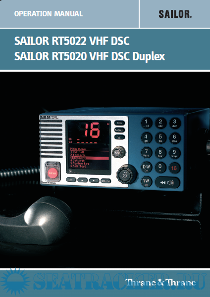 Инструкция пользователя радиоустановки SAILOR RT5022 VHF DSC / SAILOR RT5020 VHF DSC Duplex. Может пригодиться операторам ГМССБ, проходящим обучение на тренажерах ГМССБ фирмы TRANSAS TGS-5000