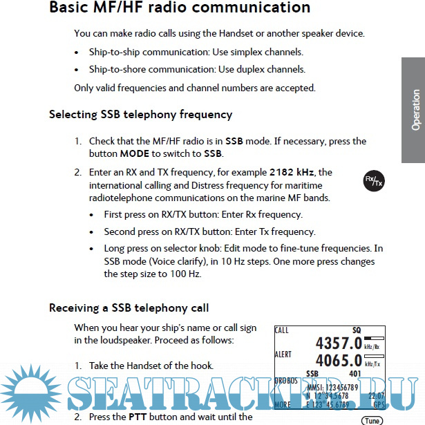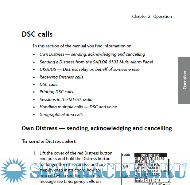 Year: 2016 Language: english Author: Thrane & Thrane A/S Genre: Manual Format: PDF/EPUB Quality: eBook Pages count: 88 Description: Radio for occupational use TT-6300 MF/HF DSC fulfils the requirements of SOLAS and is intended for use in maritime environment. SAILOR 6300 MF/HF DSC is designed for occupational use only and must be operated by licensed personnel only. SAILOR 6300 MF/HF DSC is not intended for use in an uncontrolled environment by general public. Manual overview This manual has the following chapters: • Introduction contains a description of the MF/HF radio and its components. • Operation explains how to start up the radio, make and receive voice, Distress and DSC calls, including how to handle multiple sessions, Watch and Replay. • Service & maintenance contains support information including a weekly check, diagnostics and a troubleshooting guide.