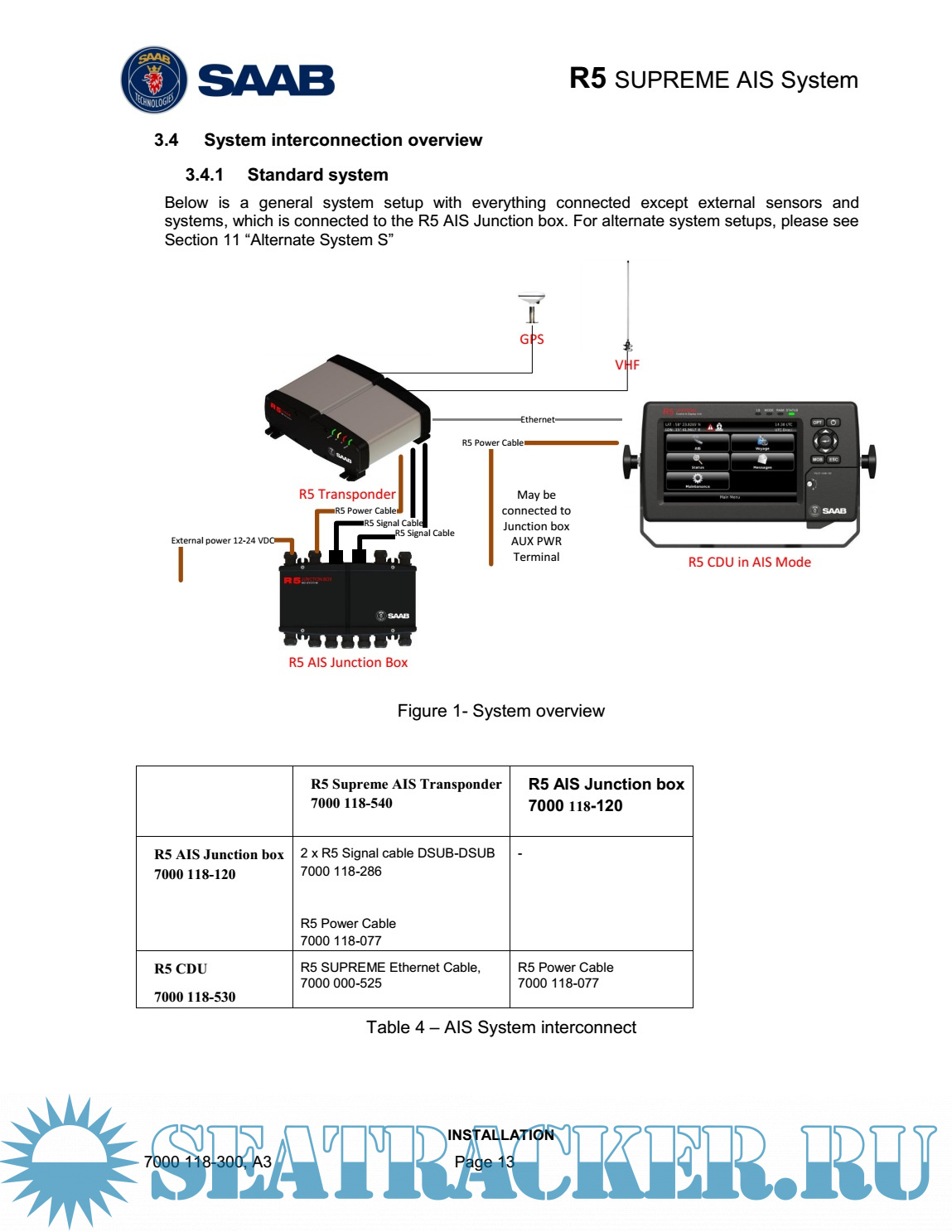 SAAB Combined Transponder System R4 AIS and Navigation system Installation Manual - SAAB [2010, PDF]