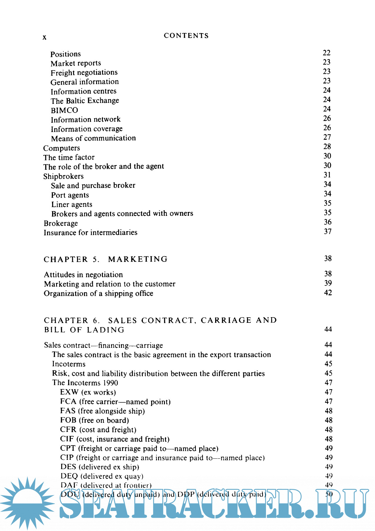 The book is a bit dated, recently I came across a mid-2000 edition, not scanned I'm afraid, and the book differ remarkably from previous editions. That's probably the reason why this book is extremely difficult to find in digital format. Although many preach that shipbroking is a very old and formal practice it changes, on the contrary, very rapidly......depending of course on the state of the different markets.