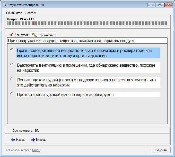 После прохождения теста можно сравнить свои ответы с правильными ответами.