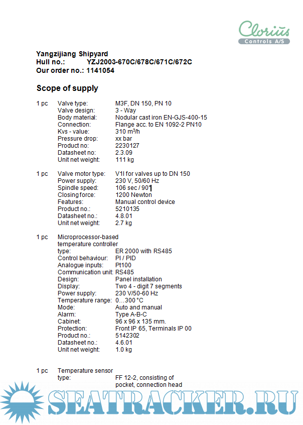 1.Scope of Supply 2.Valves 3.Motors 4.Electronic controls 5.Instructions