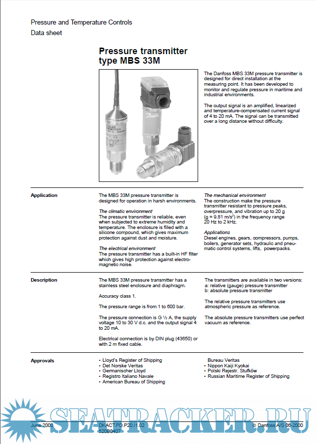 1. Pressure transmitter type MBS 33M