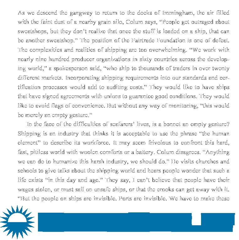 For her third book project, George looked at the working conditions of seafarers, the disappearance of national merchant marines, and the economic disaster that is the shipping industry in the 21st century.