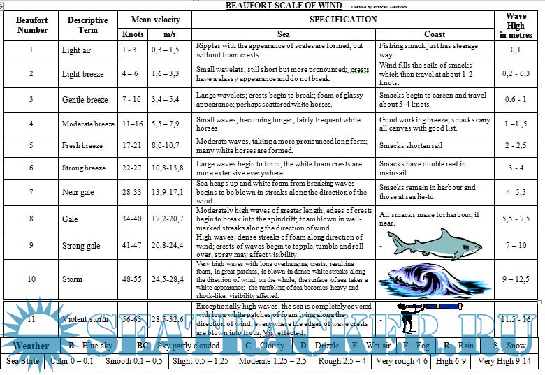 Very useful and compact Beaufort Scale for Navigators