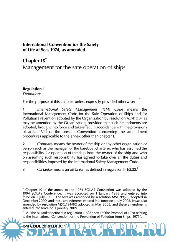 Description: The Code's origins go back to the late 1980s, when there was mounting concern about poor management standards in shipping. Investigations into accidents revealed major errors on the part of management, and in 1987 the IMO Assembly adopted resolution A.596(15), which called upon the Maritime Safety Committee to develop guidelines concerning shipboard and shore-based management to ensure the safe operation of ro-ro passenger ferries.This publication includes the texts of SOLAS chapter IX and the ISM Code. Additionally, Revised Guidelines for the operational implementation of the International Safety Management (ISM) Code by Companies (MSC-MEPC.7/Circ.8), Guidance on the qualifications, training and experience necessary for undertaking the role of the designated person under the provisions of the ISM Code (MSC-FAL.7/Circ.6), Cuidance on near-miss reporting (MSC-MEPC.7(Circ.7), Guidelines on Maritime Cyber Risk Management (MSC-FAL.7/Circ.3) and Maritime Cyber Risk Management in Safety Management Systems (resolution MSC.428(98)) are included.