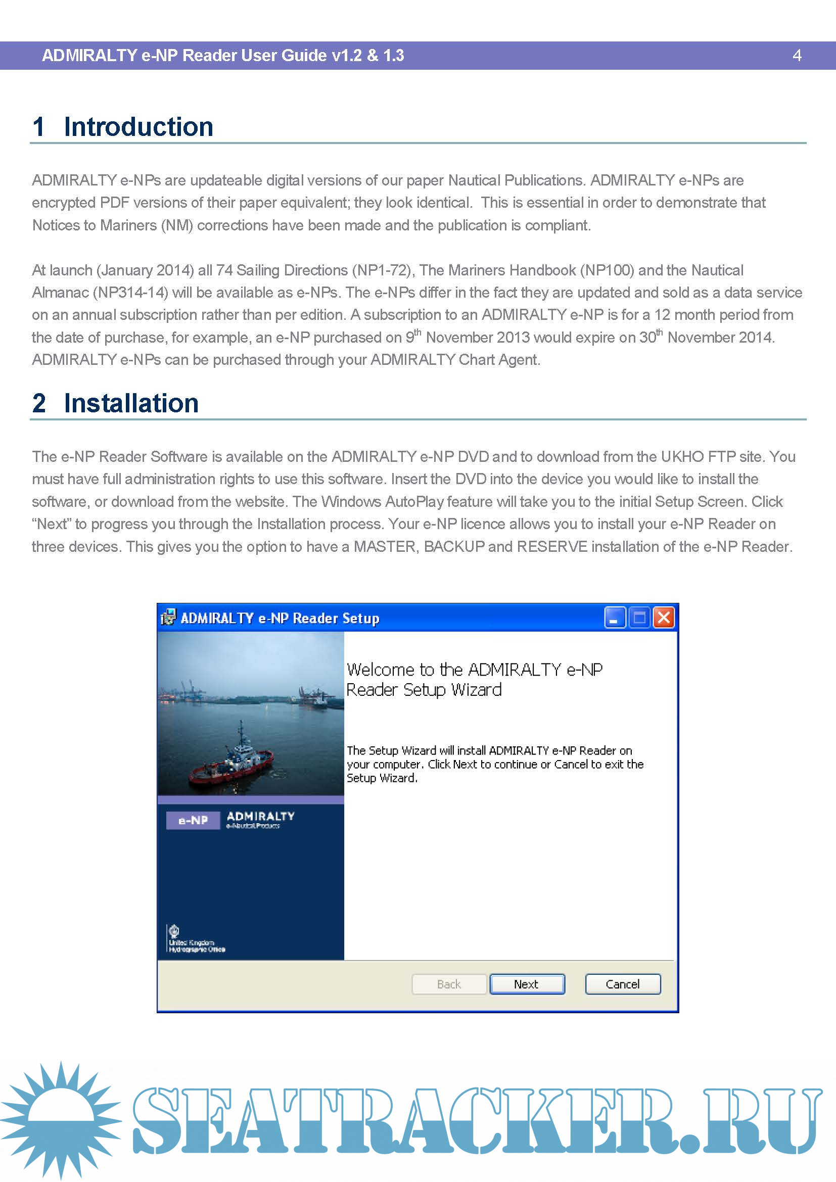 At launch (January 2014) all 74 Sailing Directions (NP1-72), The Mariners Handbook (NP100) and the Nautical Almanac (NP314-14) will be available as e-NPs. The e-NPs differ in the fact they are updated and sold as a data service on an annual subscription rather than per edition. A subscription to an ADMIRALTY e-NP is for a 12 month period from the date of purchase, for example, an e-NP purchased on 9th November 2013 would expire on 30th November 2014. ADMIRALTY e-NPs can be purchased through your ADMIRALTY Chart Agent. (44 Pages)