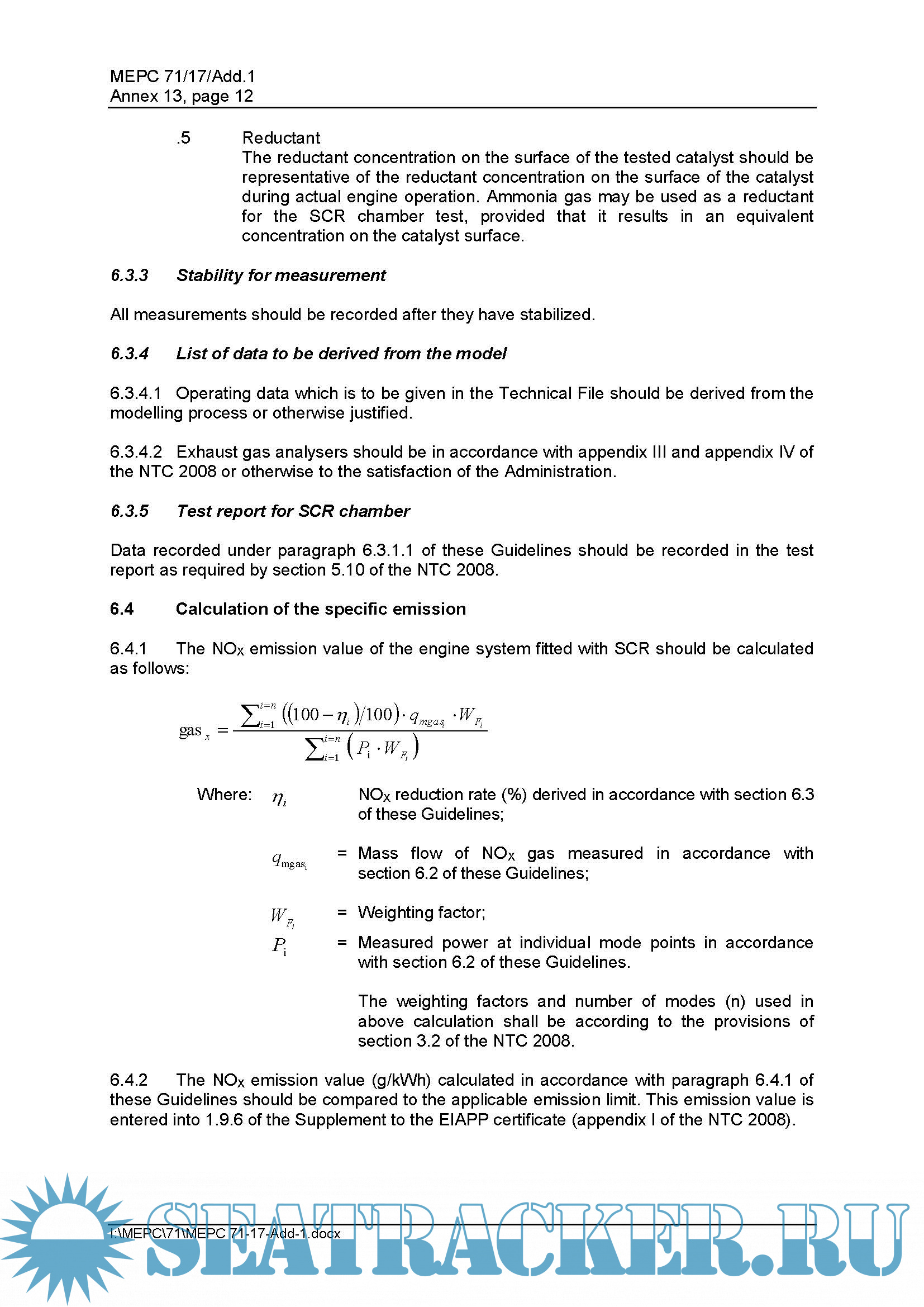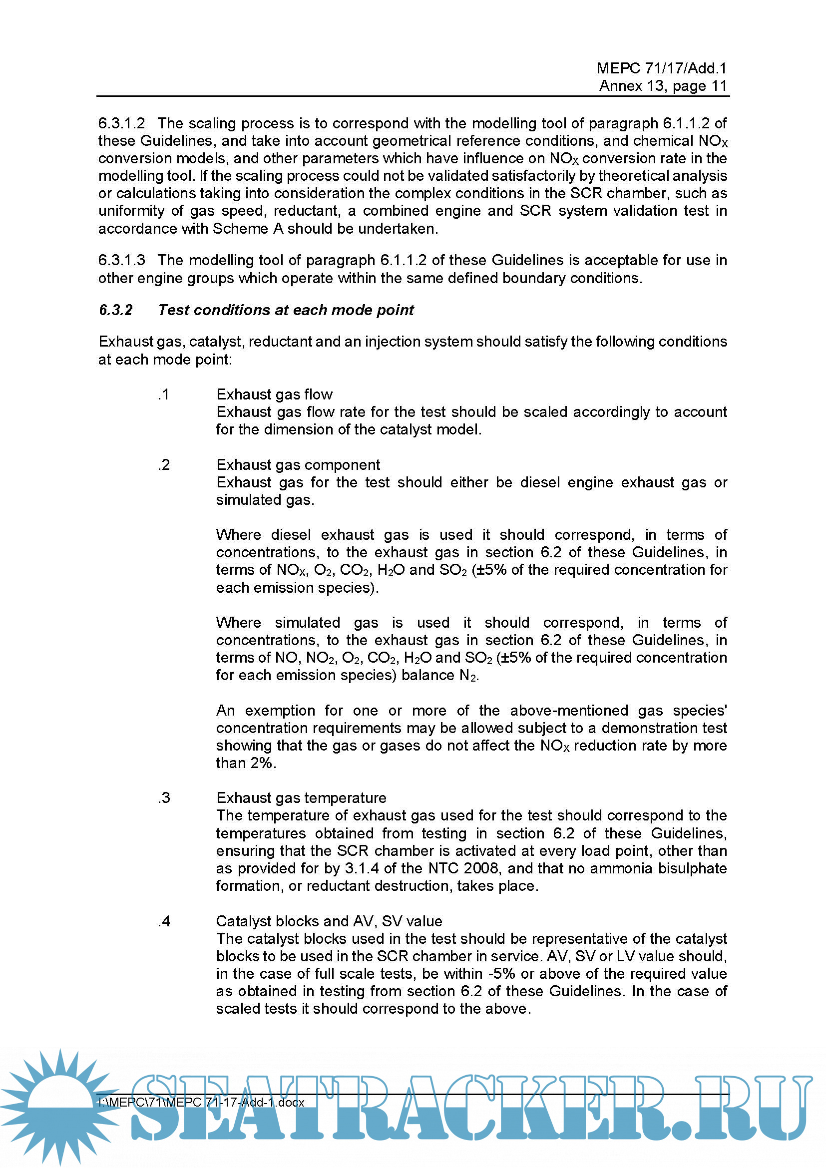 Guidelines Addressing Additional Aspects Of The Nox Technical Code 2008 With Regard To Particular Requirements Related To Marine Diesel Engines Fitted With Selective Catalytic Reduction (SCR) Systems