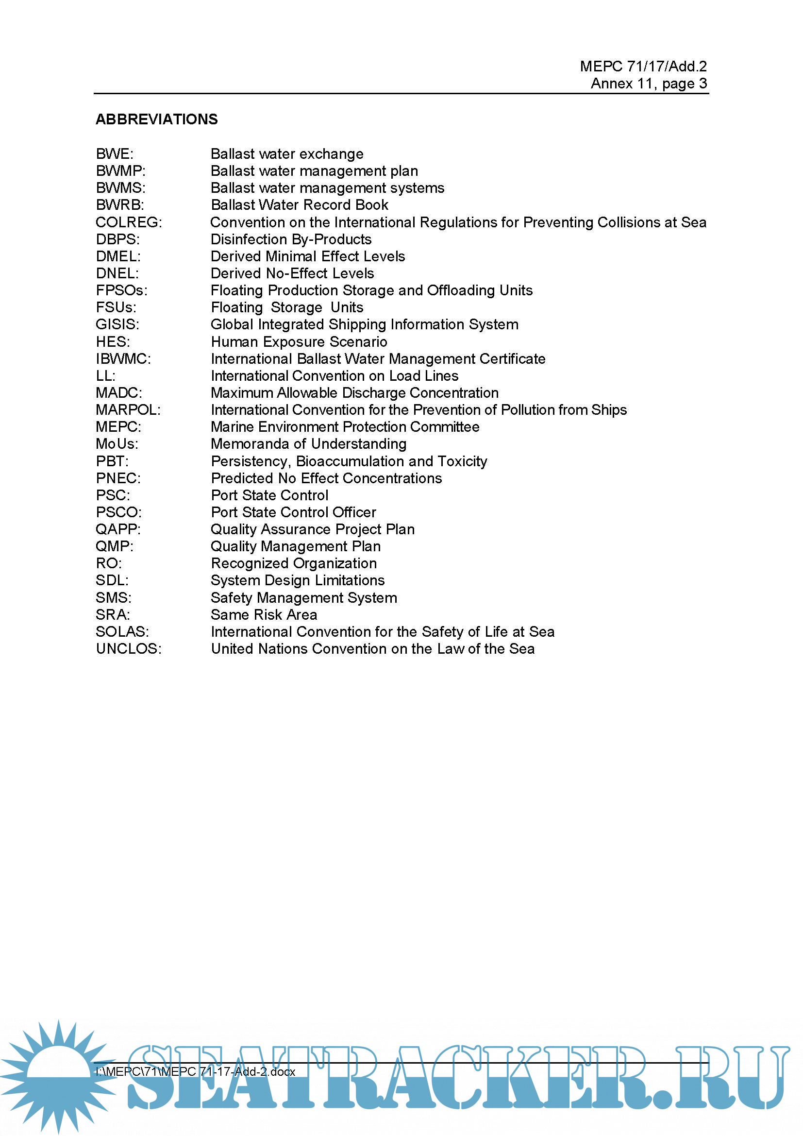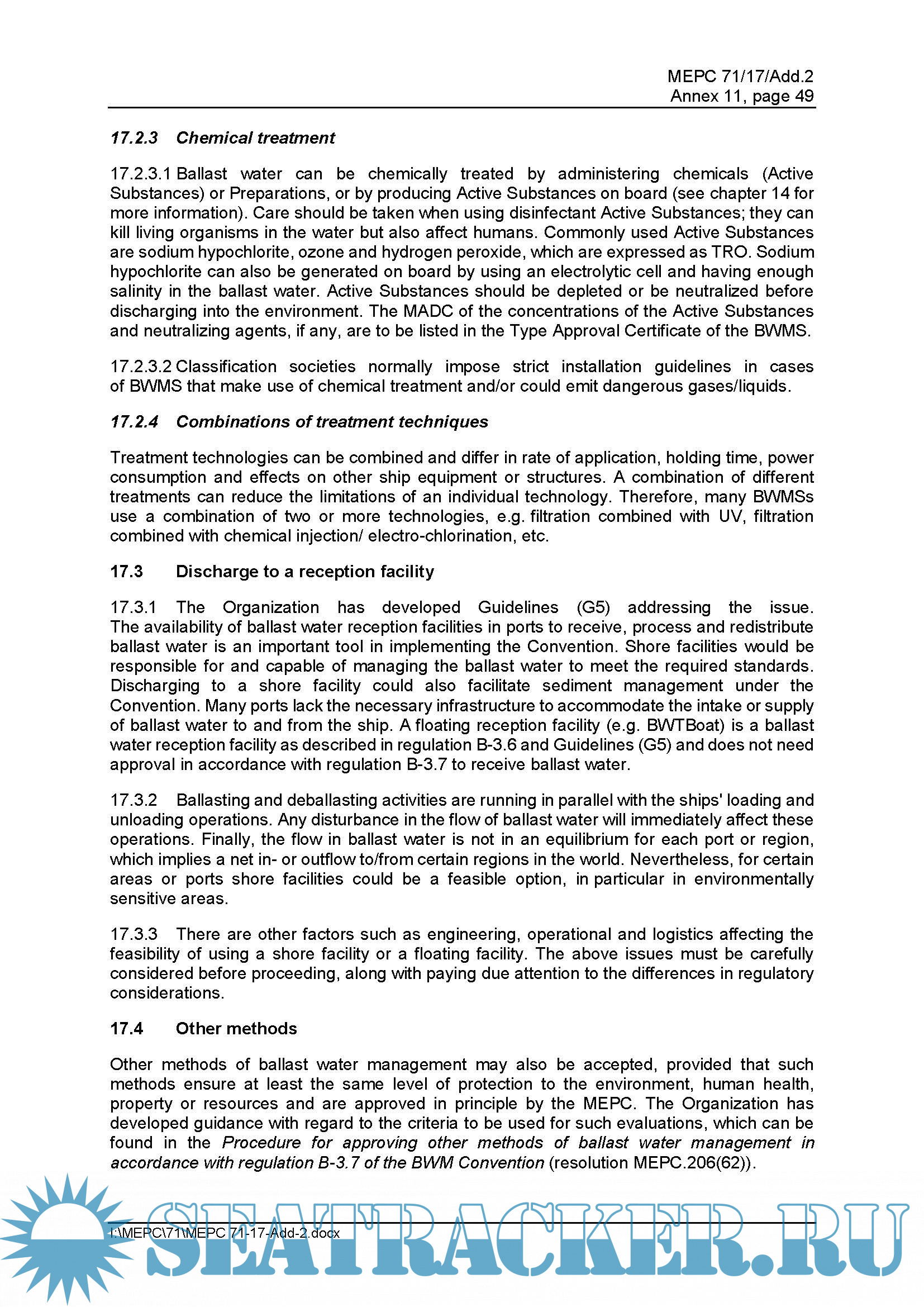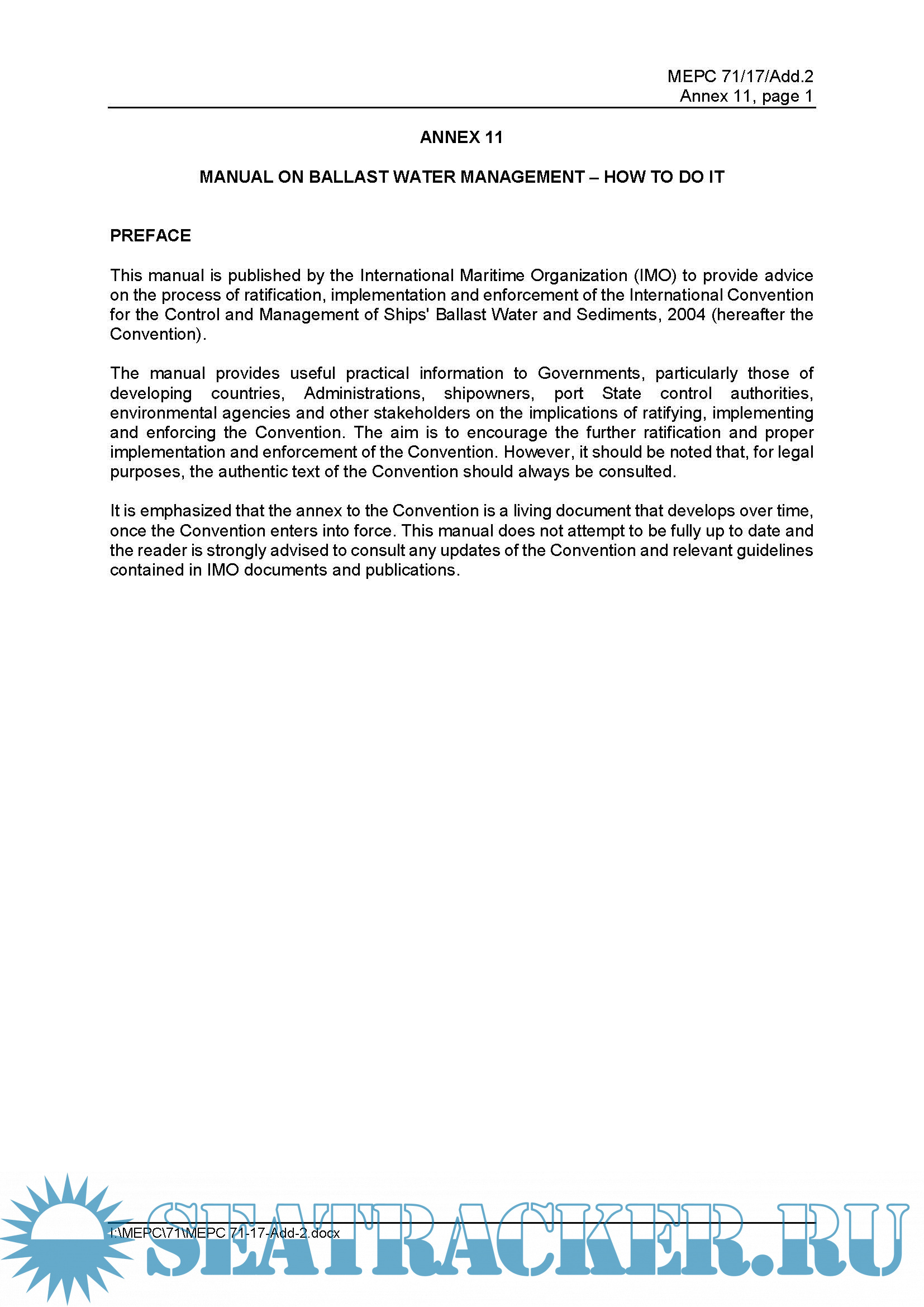 for the Control and Management of Ships' Ballast Water and Sediments, 2004 (hereafter the