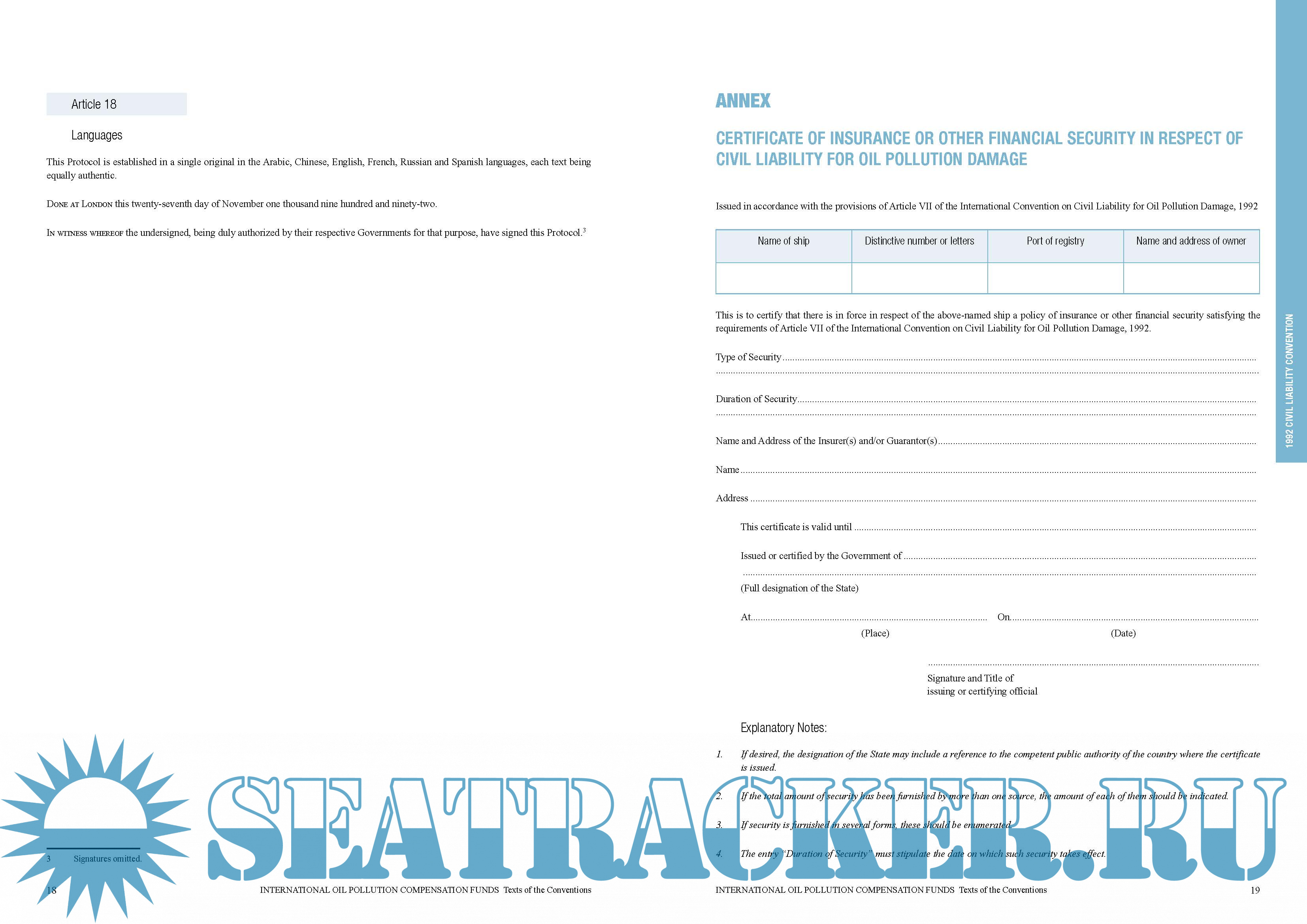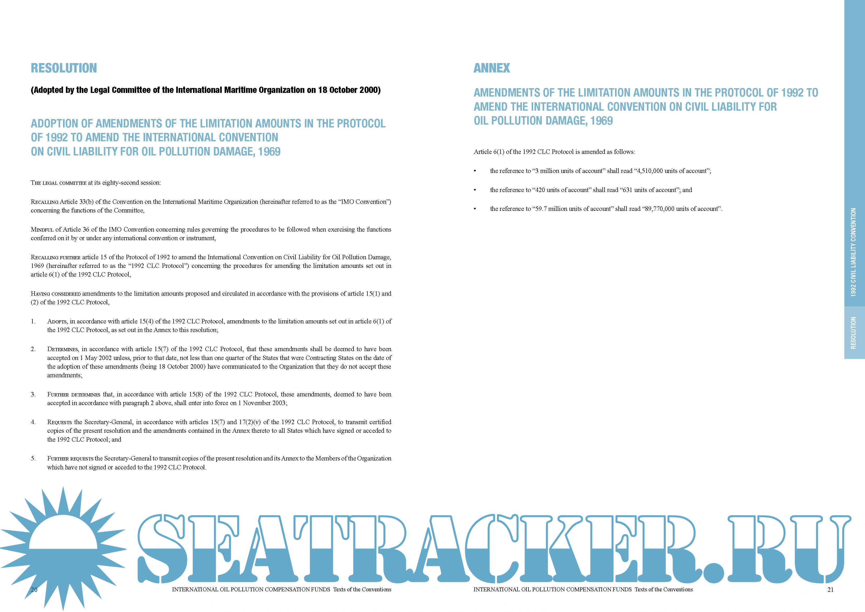 Description: This booklet contains the texts of the 1992 Civil Liability Convention and the 1992 Fund Convention, ie the consolidated texts of the 1969 Civil Liability Convention and the 1971 Fund Convention as amended by the 1992 Protocols, together with the texts of the two Resolutions on the increase of the limits, and the text of the Supplementary Fund Protocol.