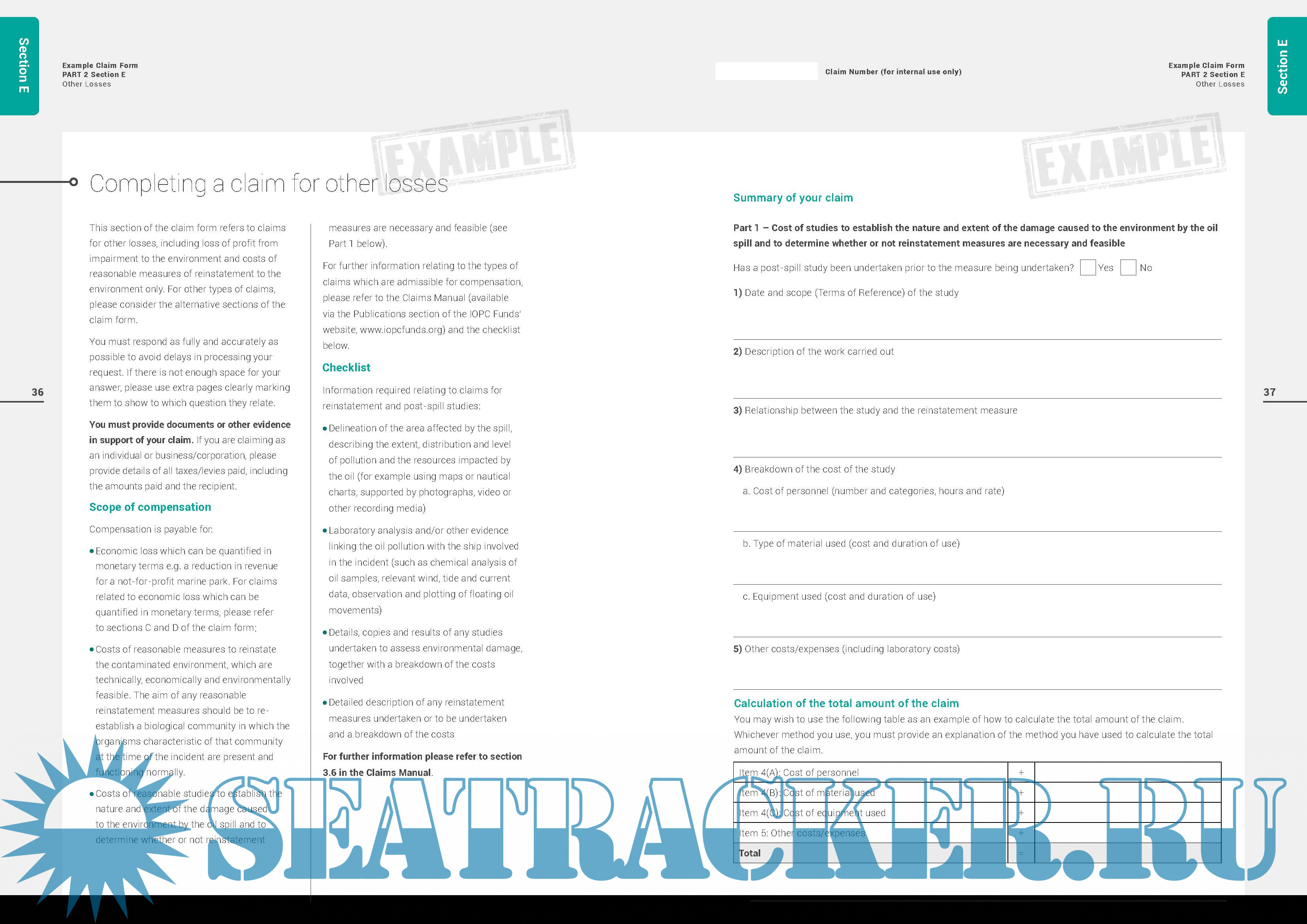 IOPC Fund 1992 Example Claim Form (25 Pages) and the