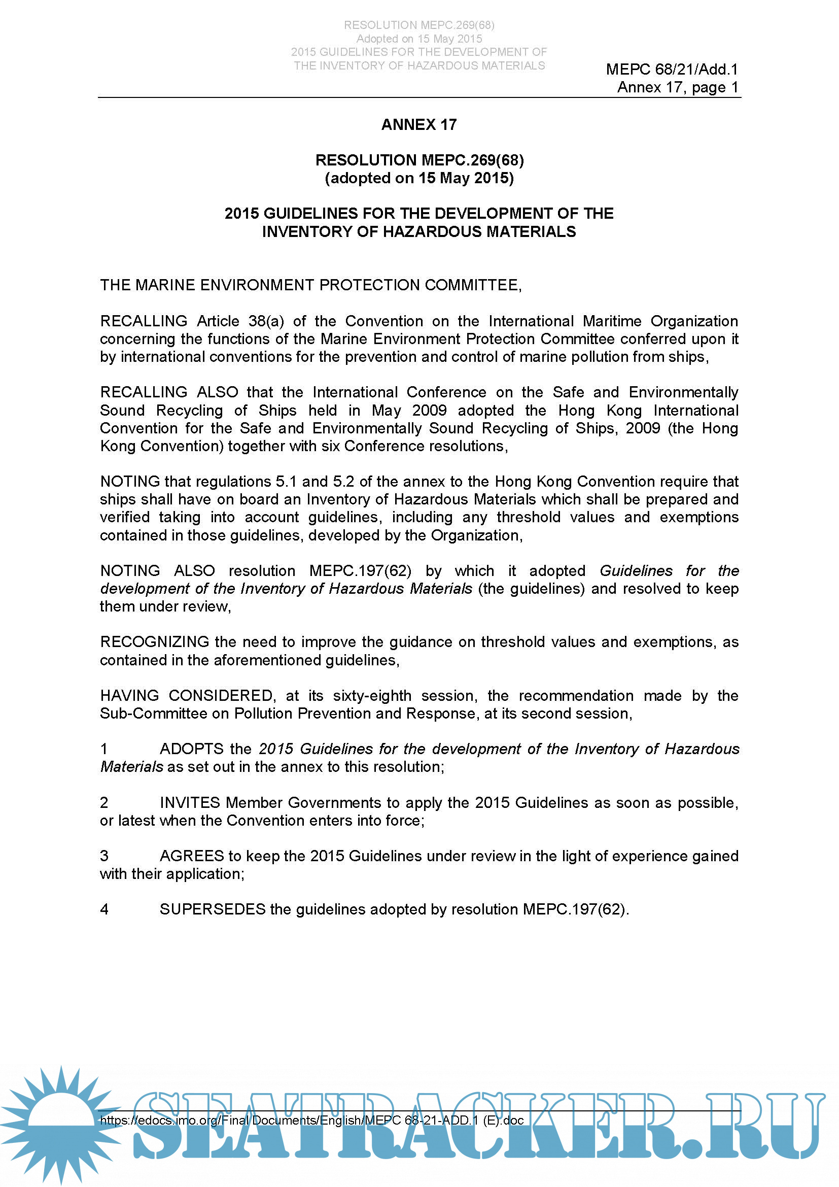 virtual2017, We have here on tghe tracker full package of the IMO Resolutions HERE.