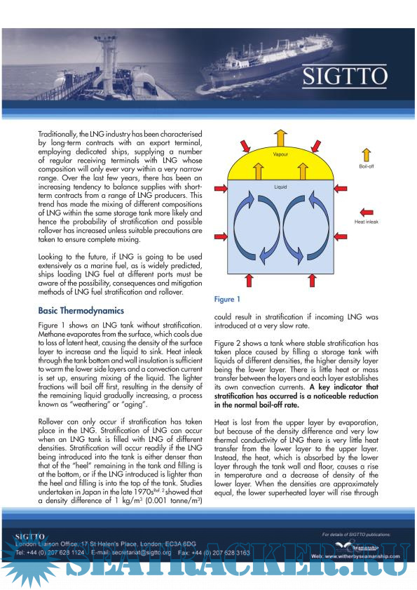 However, this SIGTTO publication is not intended to contradict any international or national requirements or standards for operational practices at the liquefied gas ship-shore interface. One of the primary objectives of this guidance was to advise the operators/owners of gas carriers about the rollover-related issues. The rollover itself mainly refers to the quick release if the LNG vapor occurring when the layers of different densities of LNG are spontaneously mixed in a cargo or storage tank. While for the conventional onshore terminals all such issues are known and understood, for LNG vessels the associated circumstances are a bit unusual and have to be paid serious additional attention...