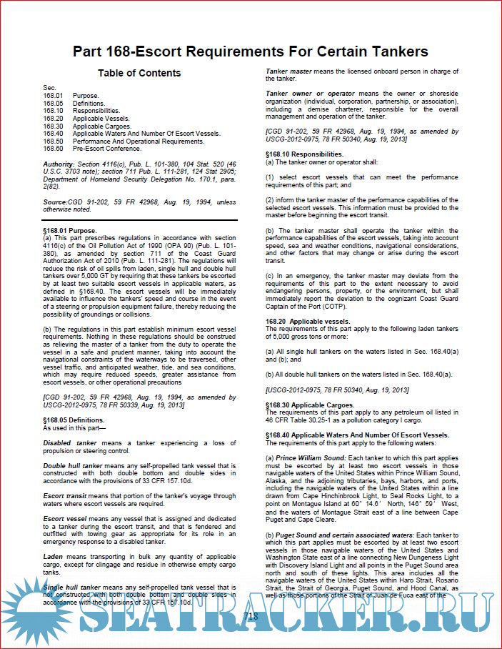 ➢ Current regulations of the United States Coast Guard, Department of