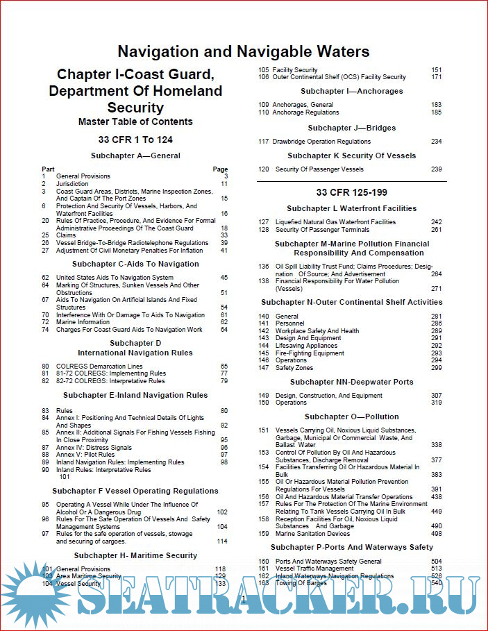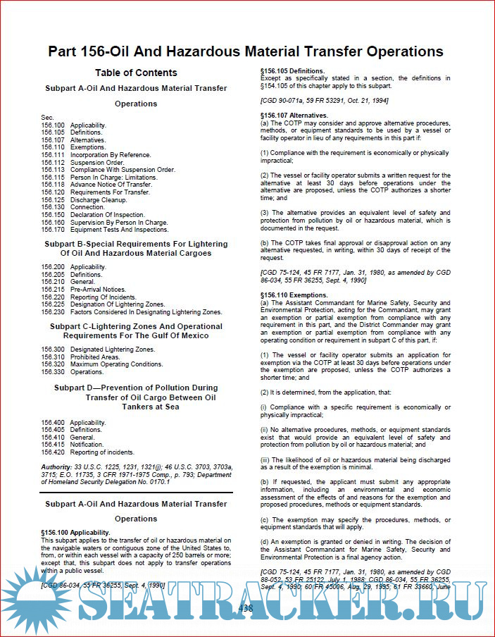 Additional info: A compilation of applicable CFR 33 & 46 regulations pertaining to Foreign Vessels Operating in the Navigable waters of the United States.