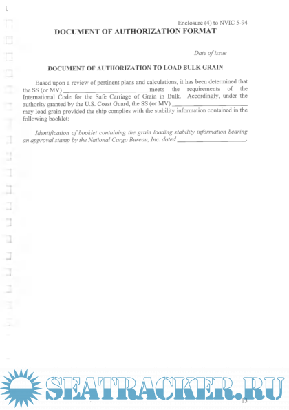 Description: US National Cargo Bureau Grain Loading booklet, containing US Coast Guard regulations for carriage of grain in bulk.