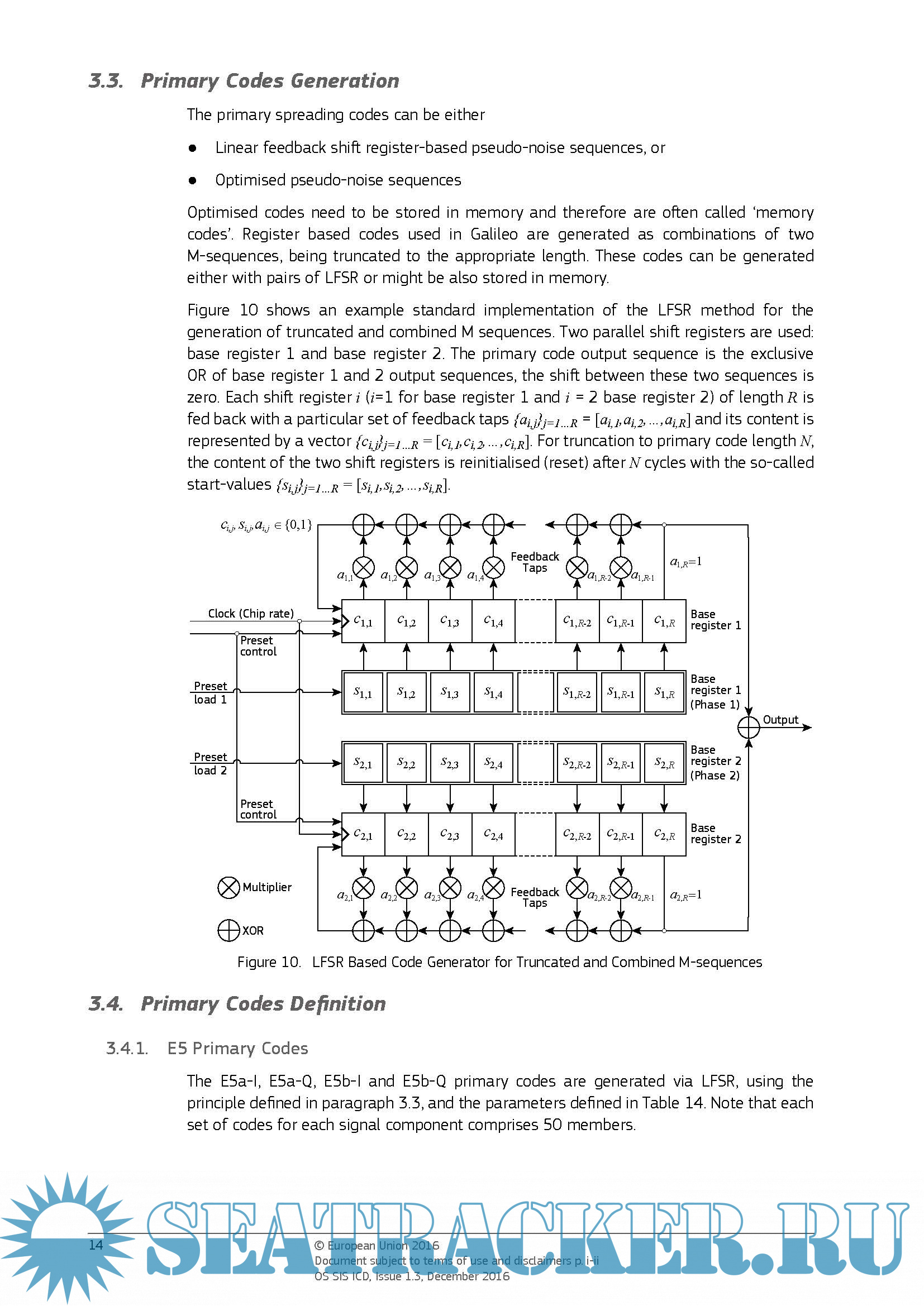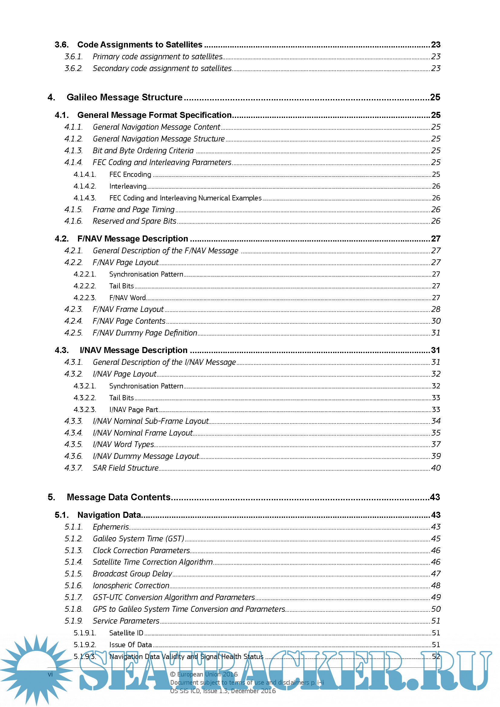 Year: 2016 Language: english Author: ESA Genre: Technical book Format: PDF Quality: eBook Pages count: 88 Description: Galileo is the European global navigation satellite system providing a highly accurate and global positioning service under civilian control. It is interoperable with GPS and GLONASS, the two other current global satellite navigation systems. The fully deployed Galileo system consists of 24 operational satellites and up to 6 active spares, positioned in three circular Medium Earth Orbit planes. Each orbit has a nominal average semi-major axis of 29 600 km, and an inclination of 56 degrees with reference to the equatorial plane. Galileo provides enhanced distress localisation and call features for the provision of a Search and Rescue (SAR ) service interoperable with the COSPA S – SARSAT system. The present document is organised as follows: Chapter 1 is this introduction which provides the scope of the document and an overview of the Galileo system Chapter 2 provides the Signal-In-Space radio frequency characteristics Chapter 3 provides the characteristics of the spreading codes Chapter 4 provides the message structures Chapter 5 provides the characteristics of the navigation message data contents