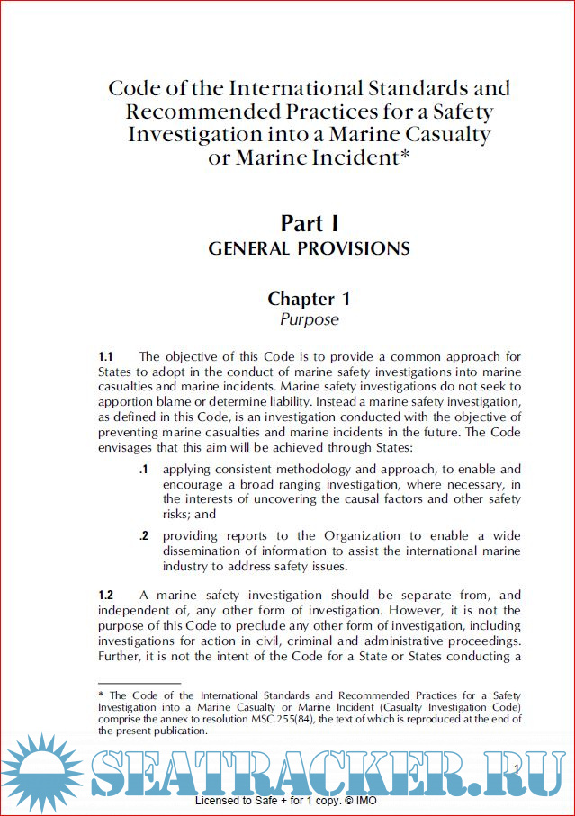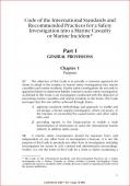 Description: The MSC adopted a new Code of the International Standards and Recommended Practices for a Safety Investigation into a Marine Casualty or Marine Incident (Casualty Investigation Code) in May 2008. Relevant amendments to SOLAS Chapter XI-1 were also adopted, to make parts I and II of the Code mandatory from 1 January 2010. Part III of the Code contains related guidance and explanatory material.