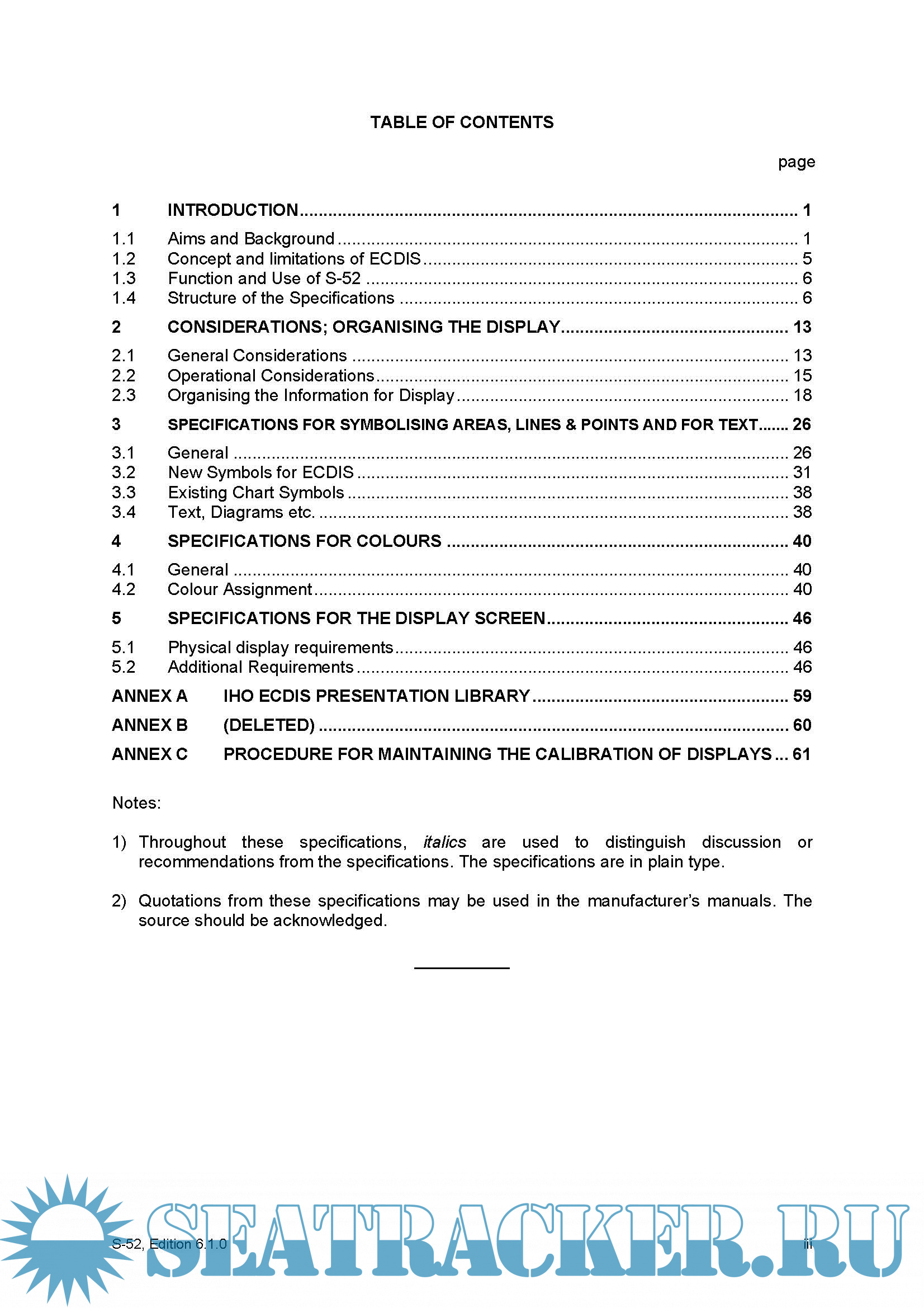 SPECIFICATIONS FOR CHART CONTENT AND DISPLAY ASPECTS OF ECDIS, Edition 6.1.0