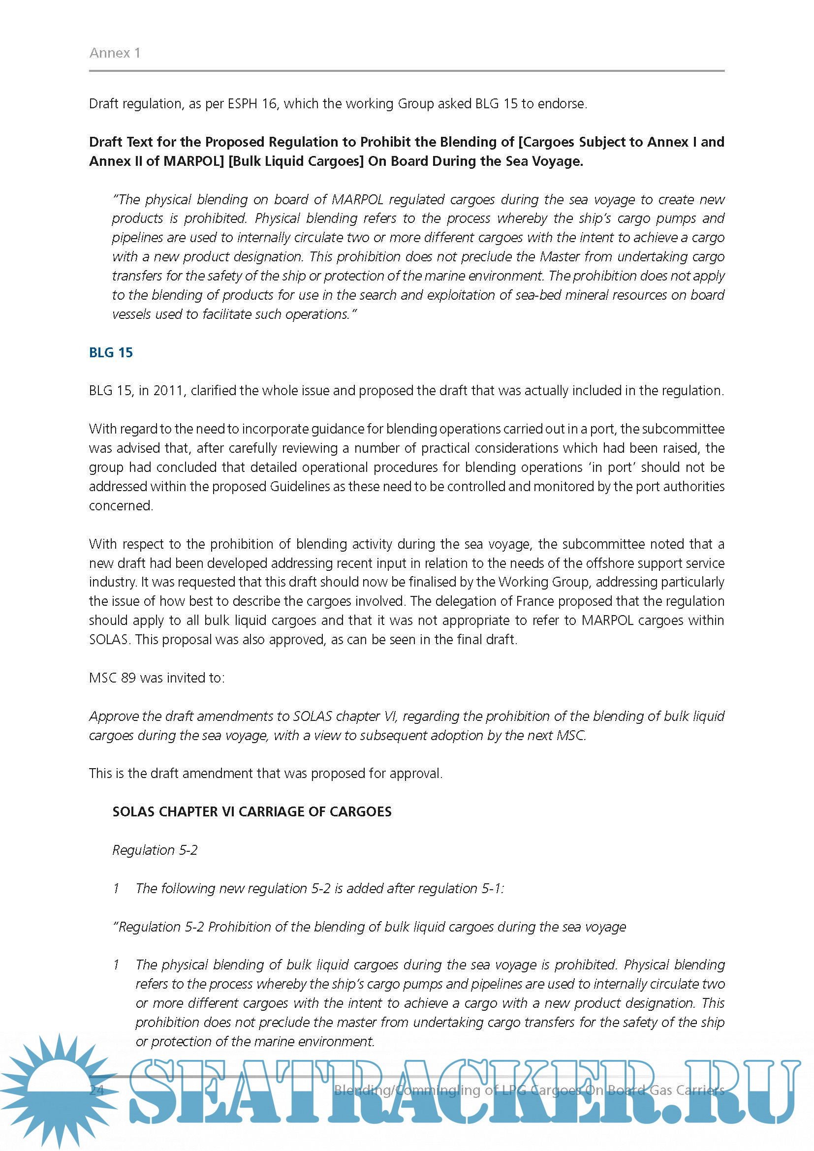 Description: The purpose of these guidelines is to assist Members in the process of blending LPG cargoes in compliance