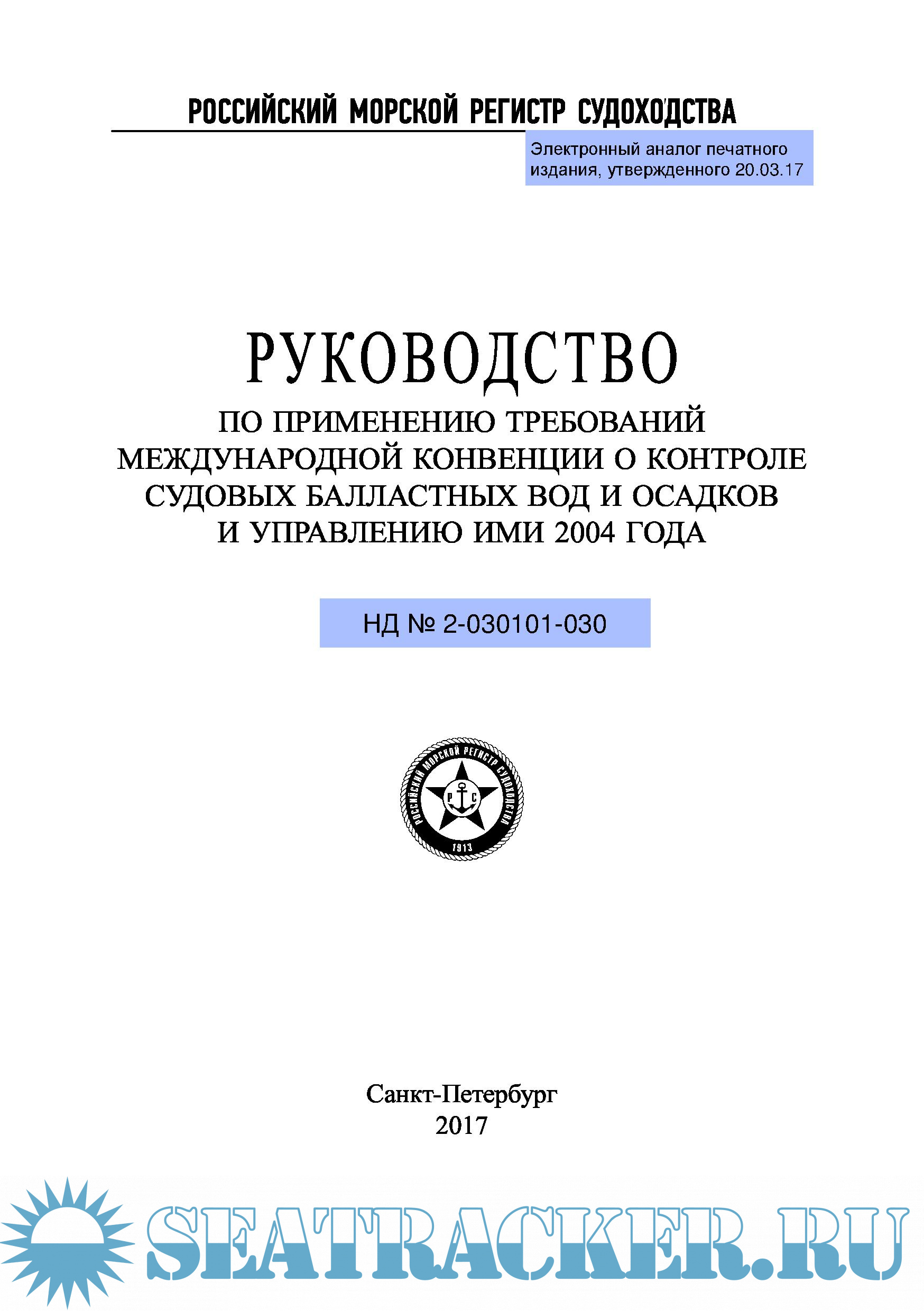 Описание: Руководство по применению требований «Международной конвенции о контроле судовых балластных вод и осадков и управлению ими 2004 г.» утверждено в соответствии с действующим положением и вступает в силу с момента опубликования (кроме разд. 4 части I).