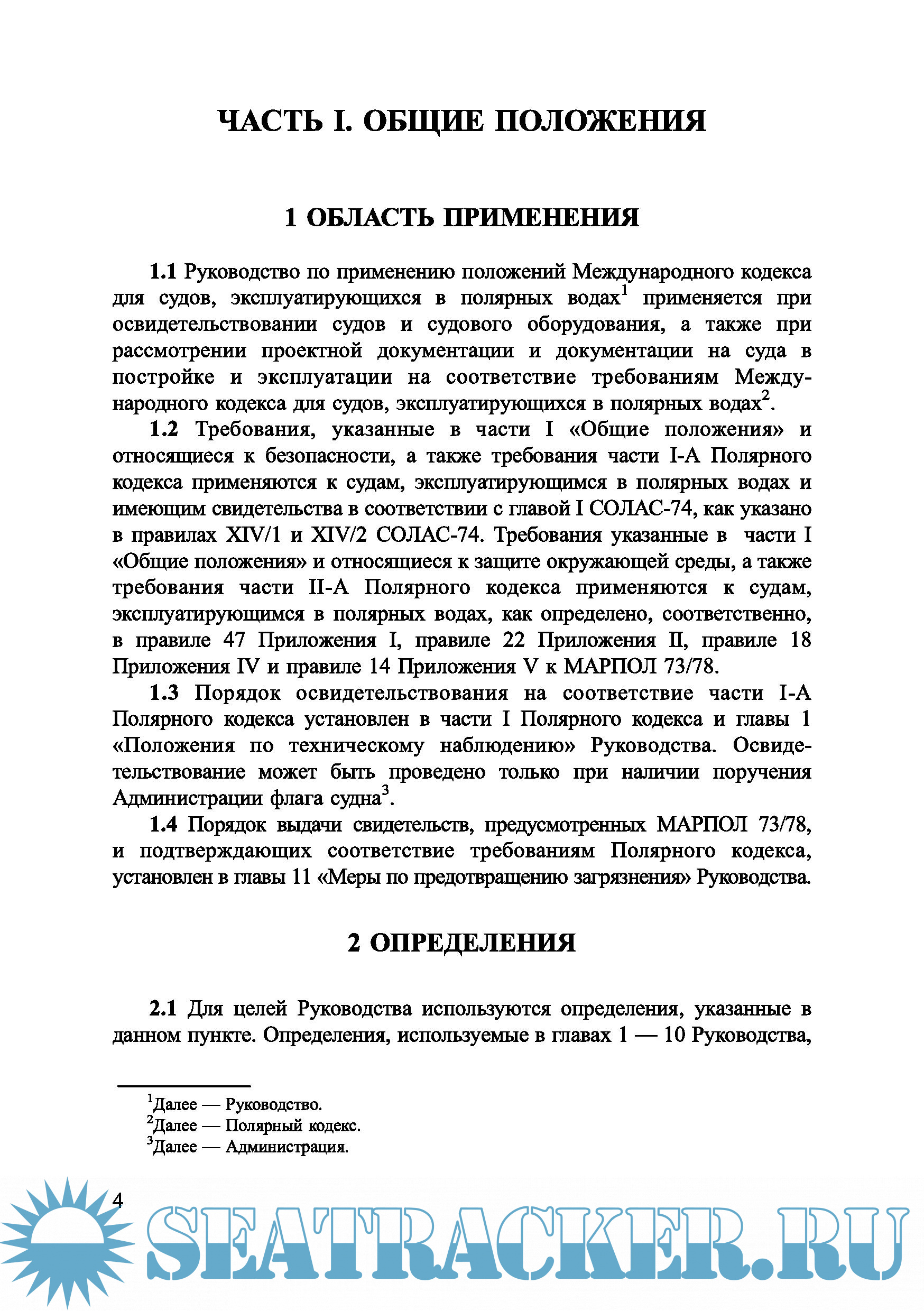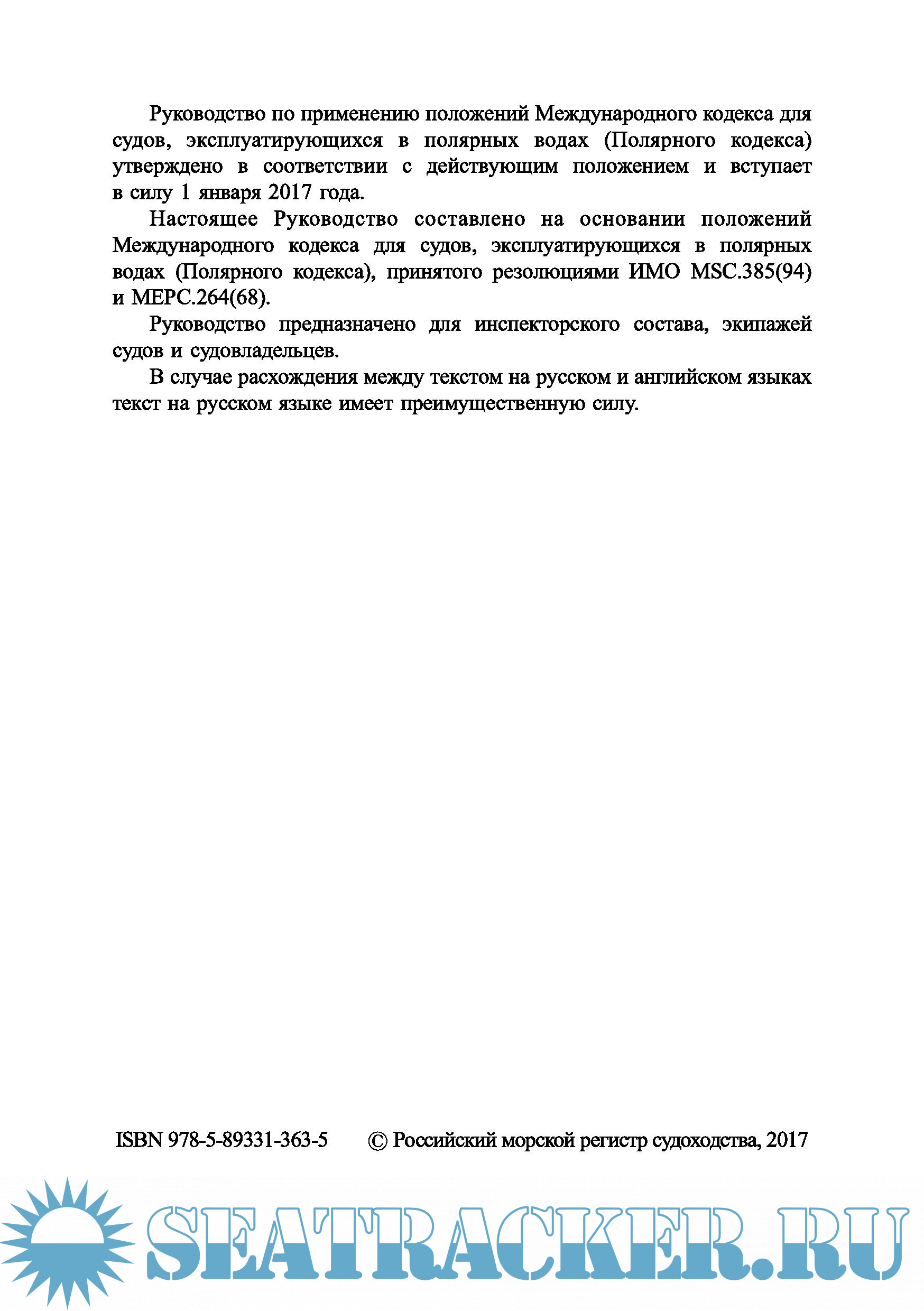 Настоящее Руководство составлено на основании положений Международного кодекса для судов, эксплуатирующихся в полярных водах (Полярного кодекса), принятого резолюциями ИМО MSC.385(94) и МЕРС.264(68).