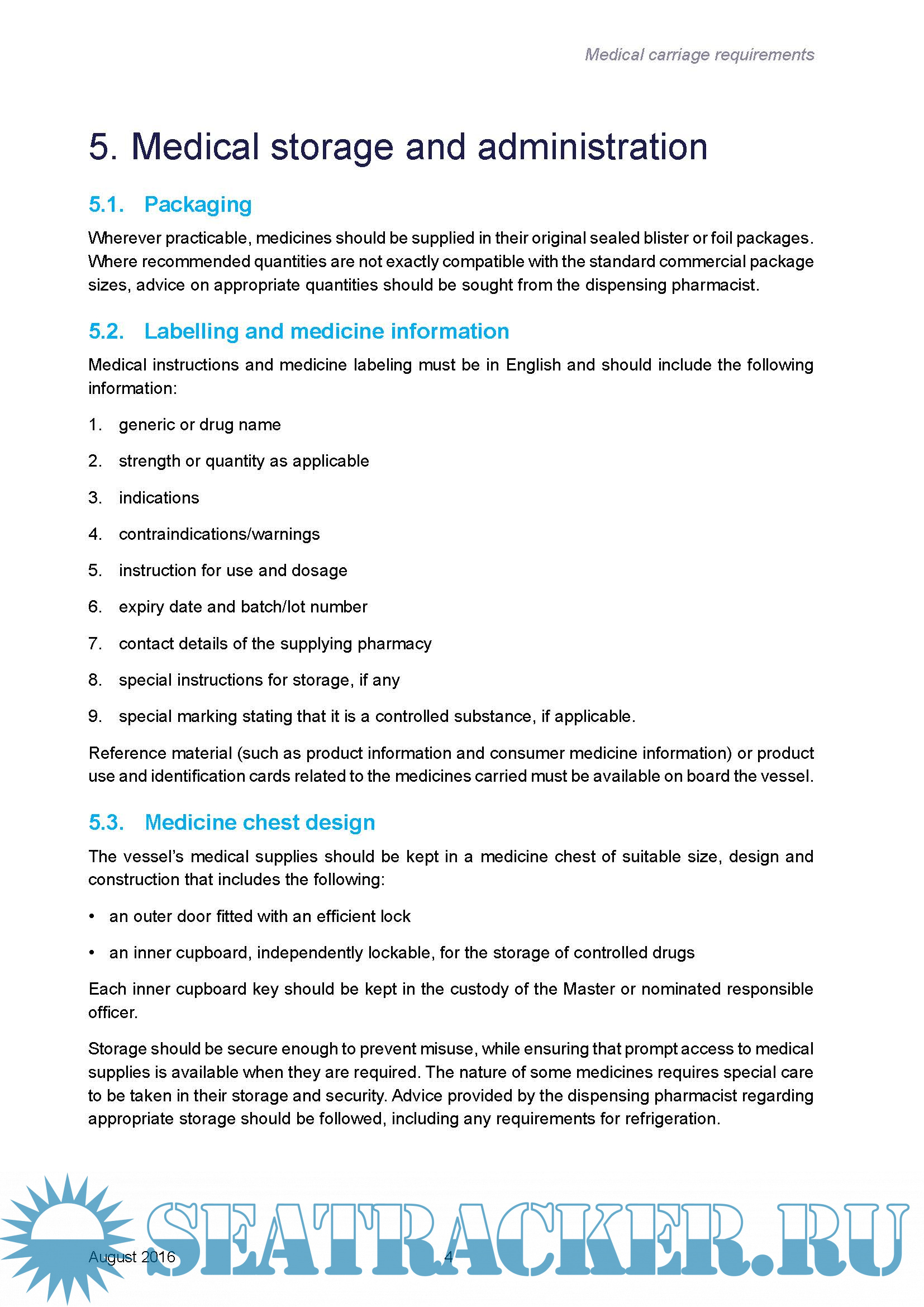 Description: Regulated Australian vessels must be equipped with a medicine chest that contains the medicines