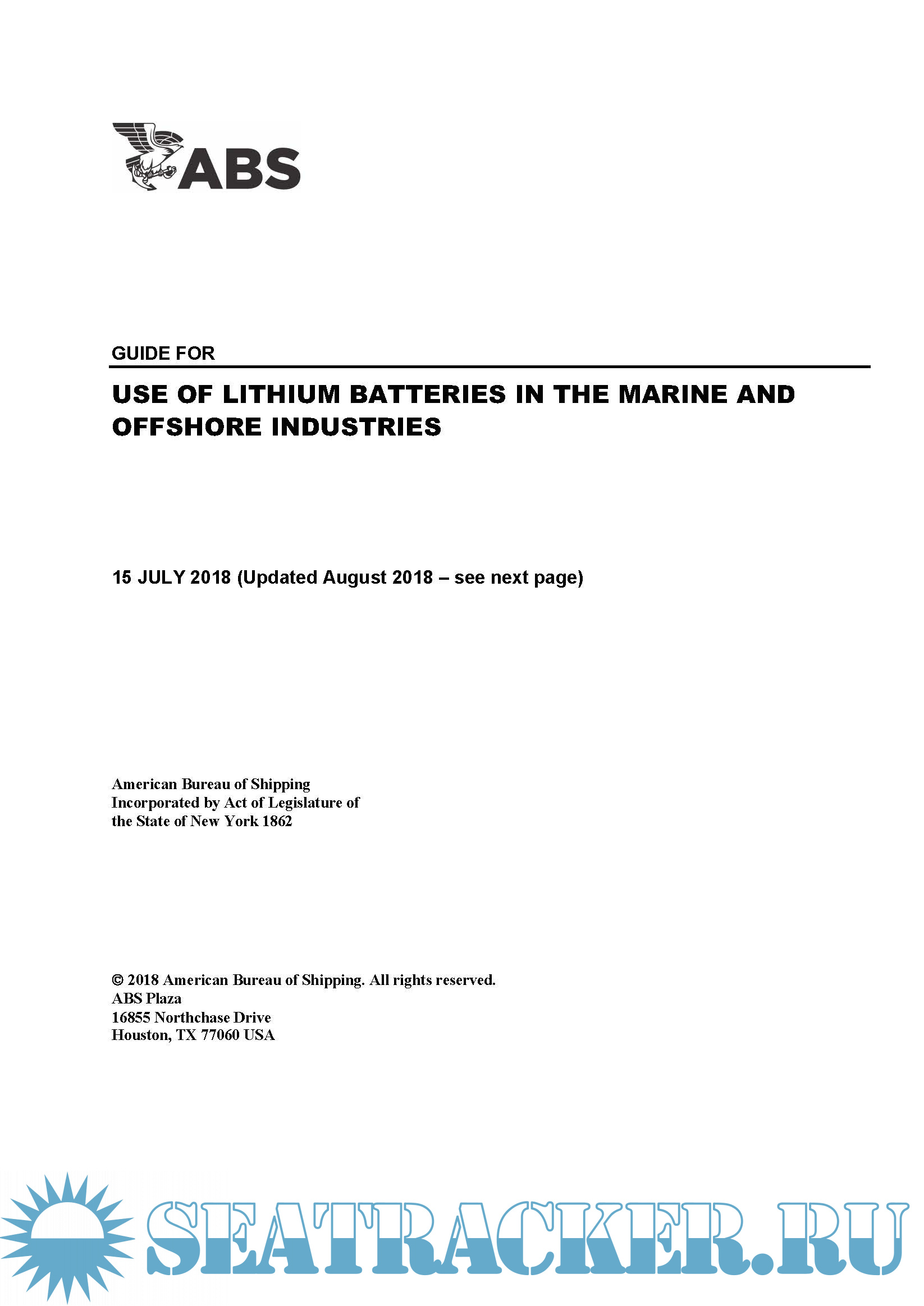 Guide for Use of Lithium-ion Batteries in the Marine AND Offshore Industries - ABS [2022, PDF]