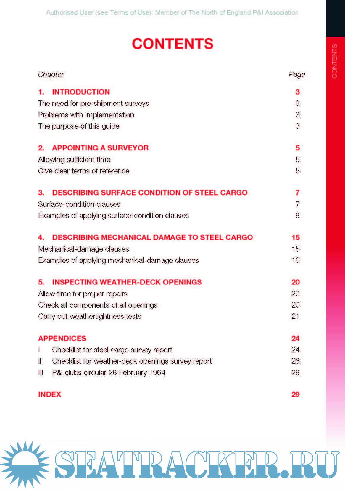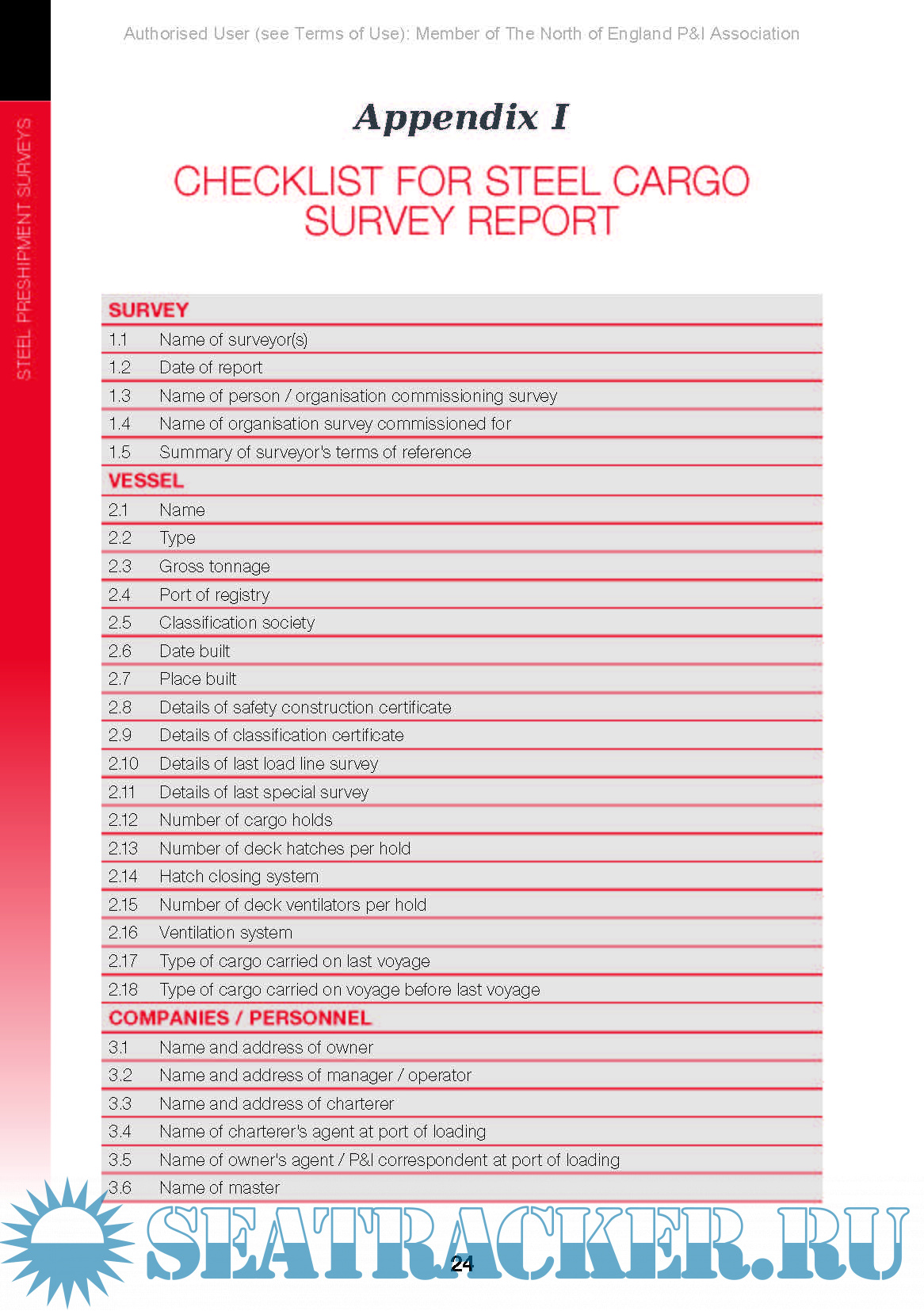 Year: 2015 Language: english Author: Arthur Sparks and The North of England P&I Association Genre: Guide Edition: 2010 ISBN: 978-0-9558257-3-6 Format: PDF Quality: eBook Pages count: 34 Description: The primary objective in producing this guide is to ensure correct and consistent usage of the P&I club clauses, thus enfranchising them with the status of an international standard method for describing steel cargoes.