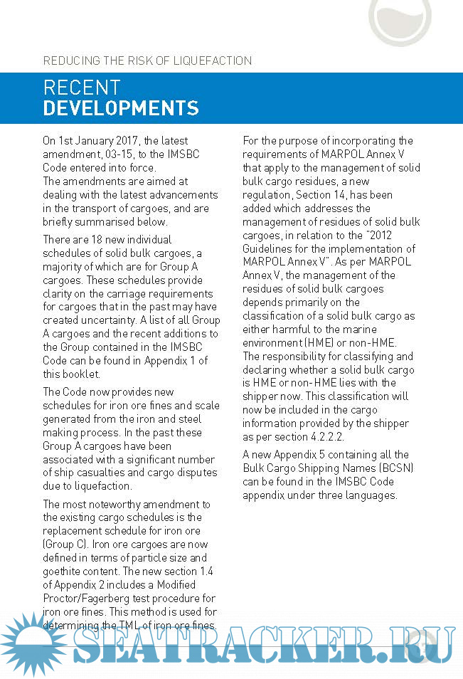 REDUCING THE RISK OF LIQUEFACTION, Operational guidance for vessels that carry cargoes which may liquefy