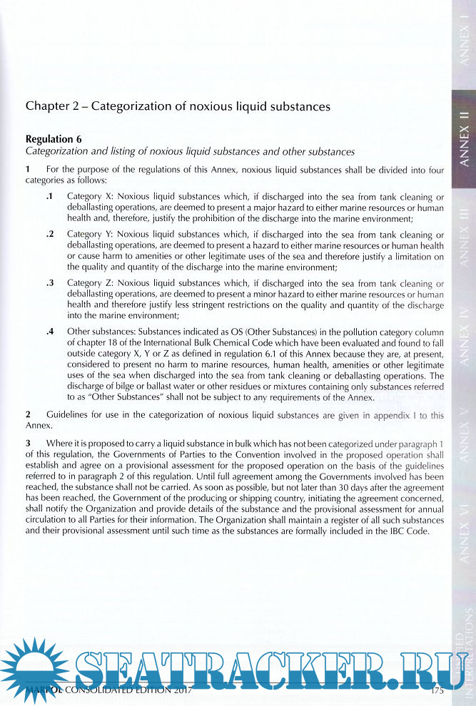 Description: The International Convention for the Prevention of Pollution from Ships, 1973 (MARPOL Convention), is concerned with preserving the marine environment through the prevention of pollution by oil and other harmful substances and the minimization of accidental discharge of such substances. Its technical content is laid out in six Annexes, the first five of which were adopted by the 1973 Convention, as modified by a 1978 Protocol. These Annexes cover pollution of the sea by oil, by noxious liquid substances in bulk, by harmful substances in packaged form, by sewage from ships, and by garbage from ships. Annex VI was adopted by a further Protocol in 1997 and covers air pollution from ships.The 2017 consolidated edition aims to provide an easy and comprehensive reference to the up-to-date provisions and Unified Interpretations of the Articles, Protocols and Annexes of the MARPOL Convention, including the incorporation of all the amendments that have been adopted by the Marine Environment Protection Committee (MEPC).