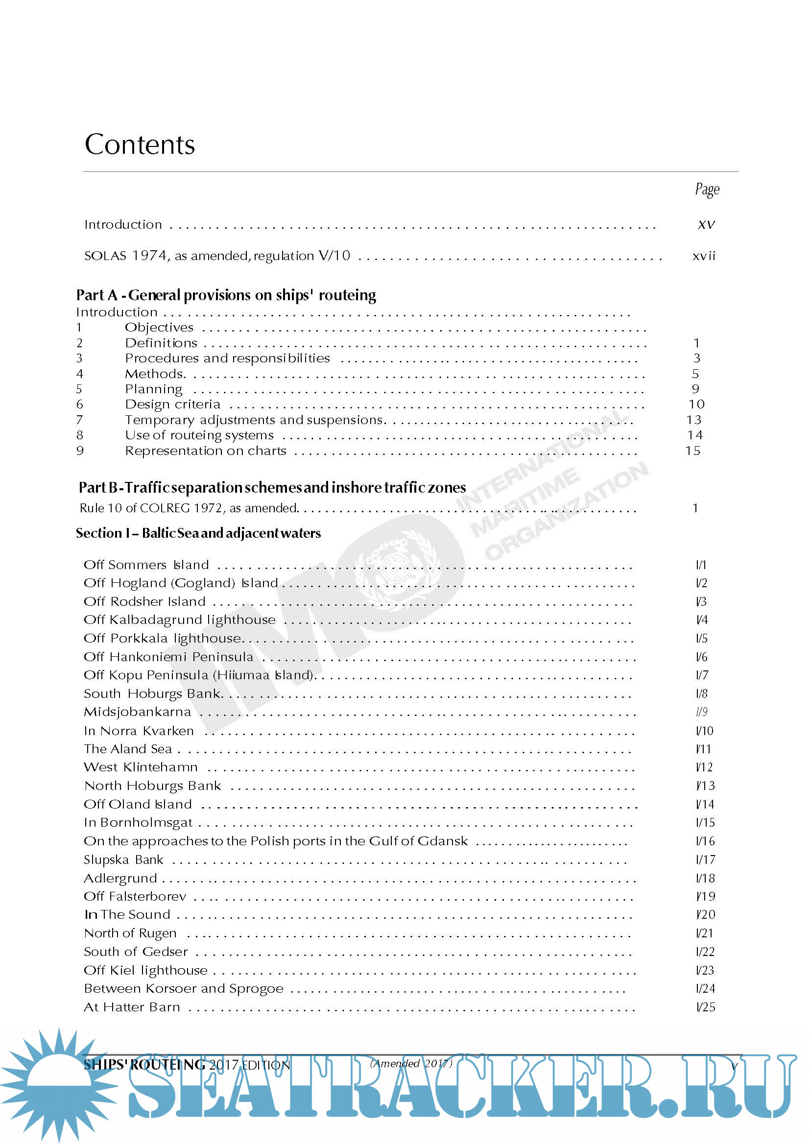 Year: 2017 Language: english Author: IMO Genre: Reference book Publisher: CPI Group Edition: 13th ISBN: 978-92-801-1665-6 Format: PDF Quality: eBook Pages count: 819 Description: Both the safety of shipping and the cleanliness of oceans are promoted in many ways, one of which is the continuing development of routeing measures to control the navigation of vessels and to monitor their progress. The measures that are described or defined in parts A and H of this publication are individually described in parts B (traffic separation schemes and inshore traffic zones), C (deep-water routes), D (areas to be avoided), E (other routeing measures, such as recommended tracks, two-way routes and recommended directions of traffic flow), F (the rules and recommendations on navigation that are associated with particular traffic areas and straits), G (mandatory ship reporting systems, mandatory routeing systems and mandatory no anchoring areas) and H (archipelagic sea lanes). This edition incorporates routeing measures that have been adopted before July 2017. Additional info: Included Addendum February 2018