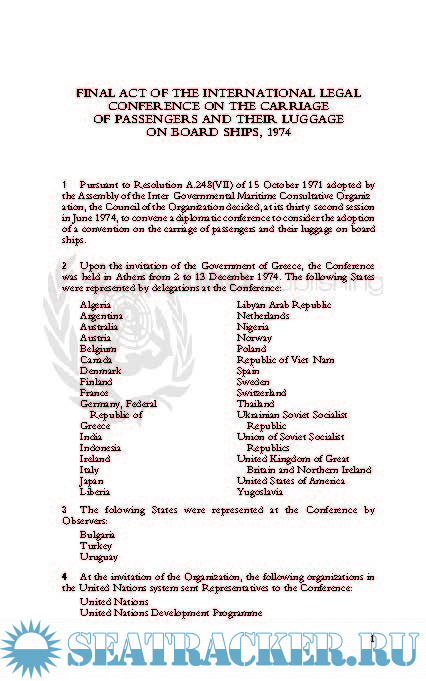 Final Act of the International Legal Conference on the Carriage of Passengers and their Luggage on Board Ship, 1974;