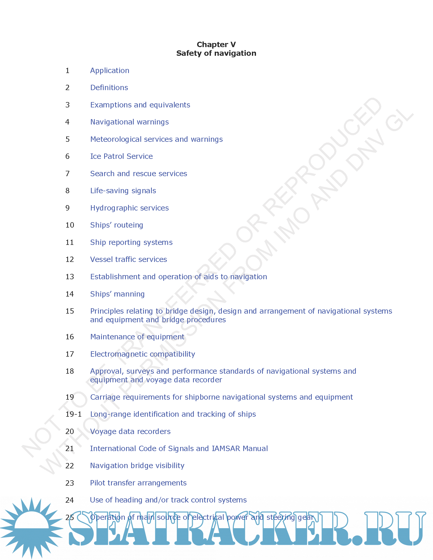Chapter V Safety of navigation