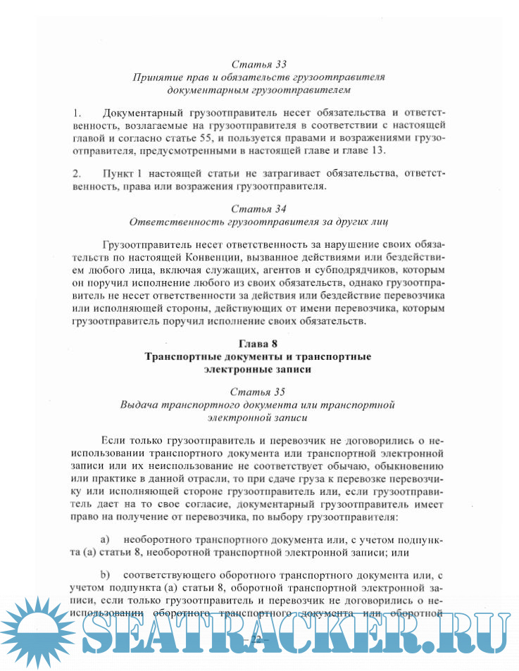 Описание: В конвенции указываются единообразные правила, регулирующие международные договоры полностью или частично морской перевозки, способствующие правовой определенности и повышению эффективности международной перевозке грузов.