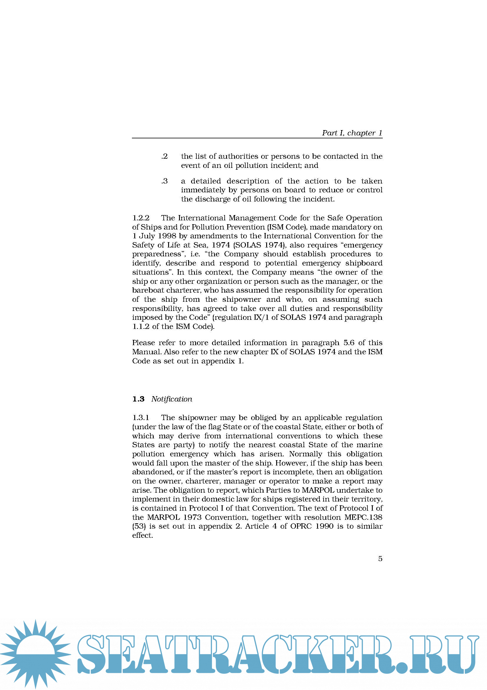 Year: 2009 Language: english Author: IMO Genre: Manual Publisher: CPI Group Edition: Second ISBN: 978-92-801-1500-0 Format: PDF Quality: eBook Pages count: 108 Description: This section provides the reader, in particular on-scene commanders, lead agencies and others involved in the management of oil pollution response, with an appreciation of the various interests involved in an oil pollution emergency and its aftermath, as well as a general review of the international legal regimes governing limitation of liability and compensation for oil pollution damage.