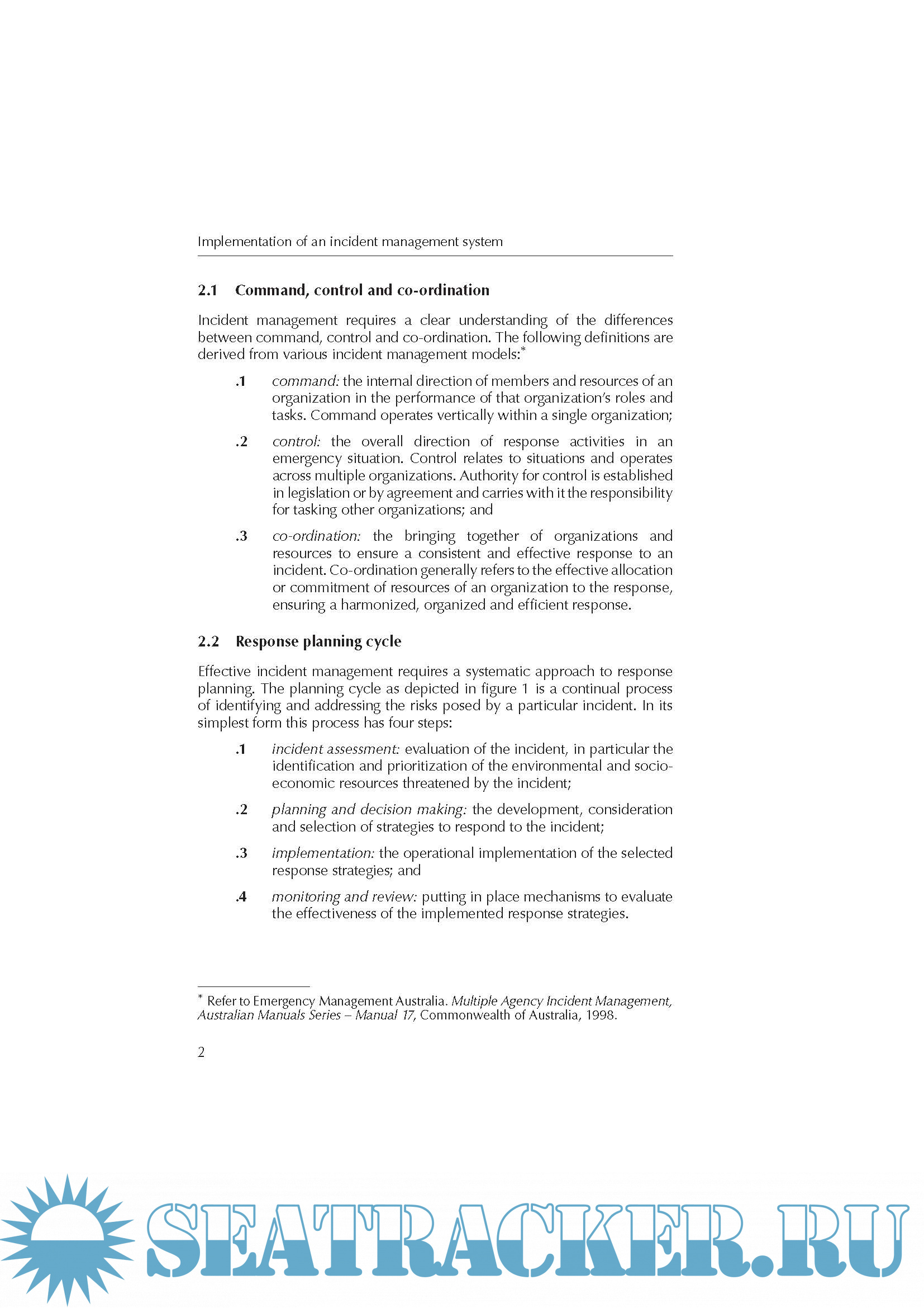 Description: This publication, prepared by the OPRC-HNS Technical Group and approved by IMO’s Marine Environmental Protection Committee, provides guidance on the establishment of an incident management system (IMS) for marine pollution incidents.
