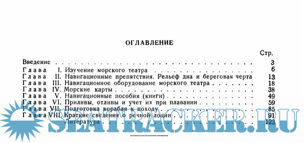 Описание: Учебное пособие "Лоция" предназначается для курсантов высших военно-морских командных училищ и офицеров ВМФ. В нём рассматриваются вопросы, связанные с безопасностью плавания: навигационные препятствия, навигационное оборудование морского театра, морские карты и навигационные пособия, приливы и их учет; а также даются необходимые сведения по подготовке корабля к походу и кратко изложены основы речной лоции.