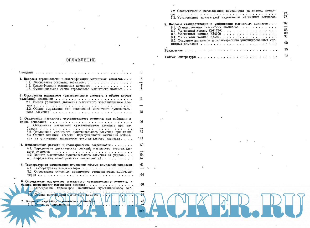 Год выпуска: 1984 Язык: русский Автор: Н.Дегтерев Жанр: Техническая литература Издательство: ЦНИИ Румб Формат: PDF Качество: Отсканированные страницы Количество страниц: 103 Описание: В книге приводится классификация компасов, формулируются принципы расчета в целях получения допустимого значения погрешности при различных видах возмущений, в том числе при случайном воздействии дестабилизирующих факторов. Оцениваются диапазоны динамических реакций, и приводится структура основных функциональных элементов. Анализируются причины появления первичных погрешностей, каналы их прохождения, распределение их плотностей вероятностей, приводятся вероятностные оценки суммарных погрешностей. Значительное место уделено статистическому исследованию надежности компасов. Дается описание конструкций современных магнитных компасов, разработанных в соответствии со стандартами ИСО. В обзоре использованы литературные источники с 1959 по 1984 г. Обзор предназначен для научных и инженерно-технических работников, занимающихся проектированием и эксплуатацией магнитных компасов.