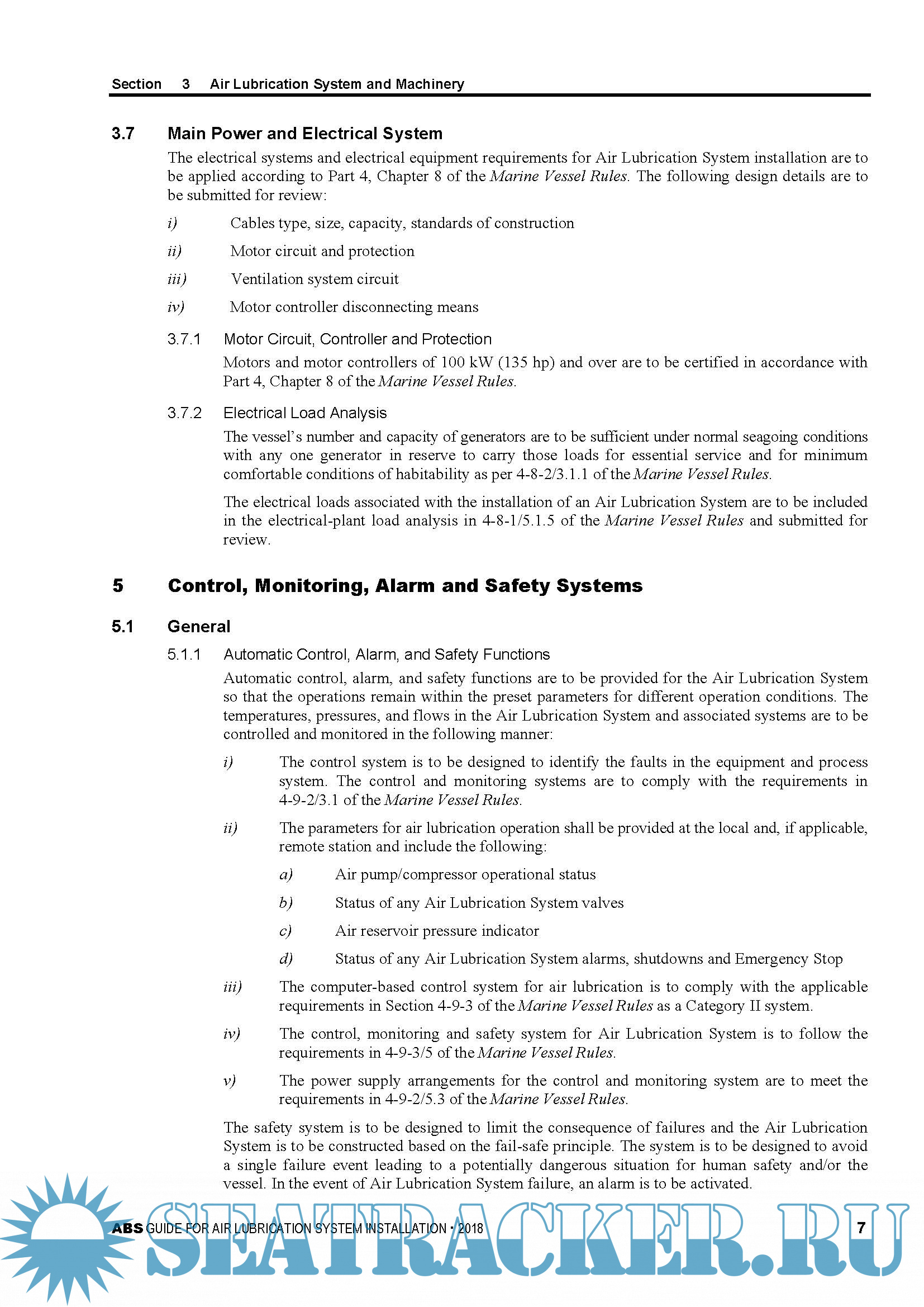Year: 2018 Language: english Author: ABS Genre: Guide Format: PDF Quality: eBook Pages count: 12 Description: This Guide is applicable to three air lubrication technologies: air bubble, air layer and air cavity methods, which are currently in various degrees of development by the industry. These technologies are continuously evolving. Alternative arrangements, designs and technologies may be acceptable on a case-by-case basis provided they can be demonstrated, through either satisfactory service experience or a systematic analysis based on sound engineering principles, to meet the overall requirements of this Guide. The effective date of this Guide is the first day of the month of publication.
