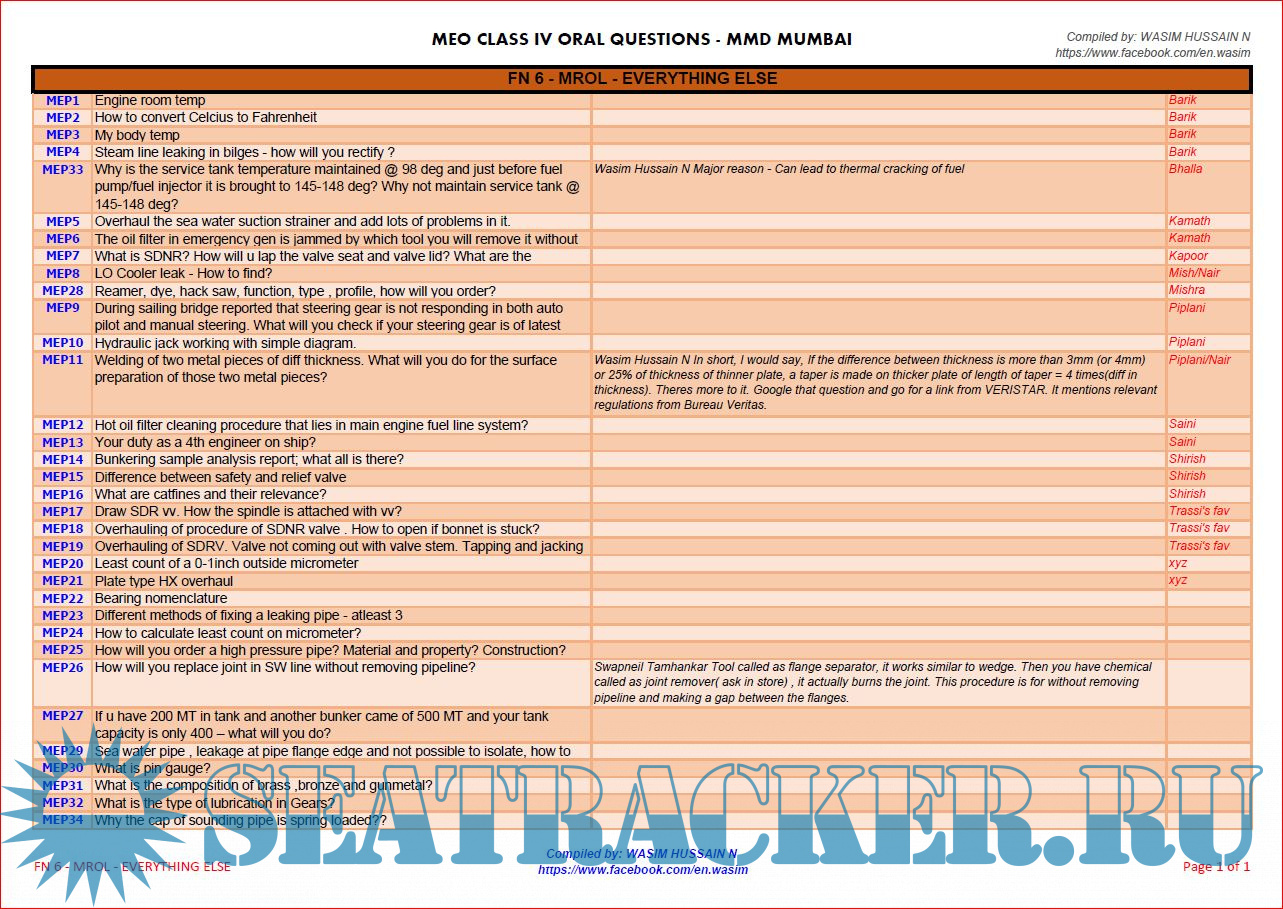 Description: This is a random compilation of questions asked by Surveyors during Orals examinations in Mumbai MMD, India.